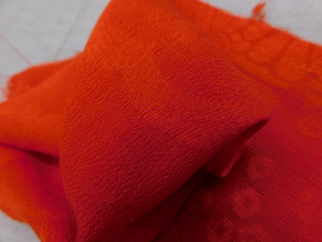 ★品名★    紋縮緬 赤無地 ハギレ 半巾 42cm×17cm 古布古裂