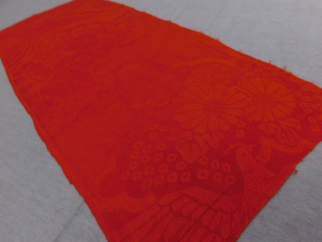 ★品名★    紋縮緬 赤無地 ハギレ 61cm×27.5cm 古布古裂