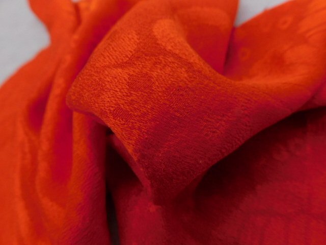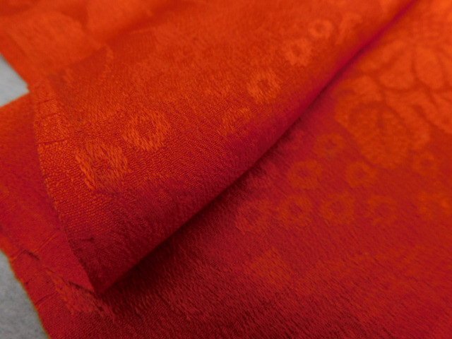 〔楽布〕P28731 紋縮緬 赤無地 ハギレ 61cm×27.5cm 古布古裂 大正ロマン k
