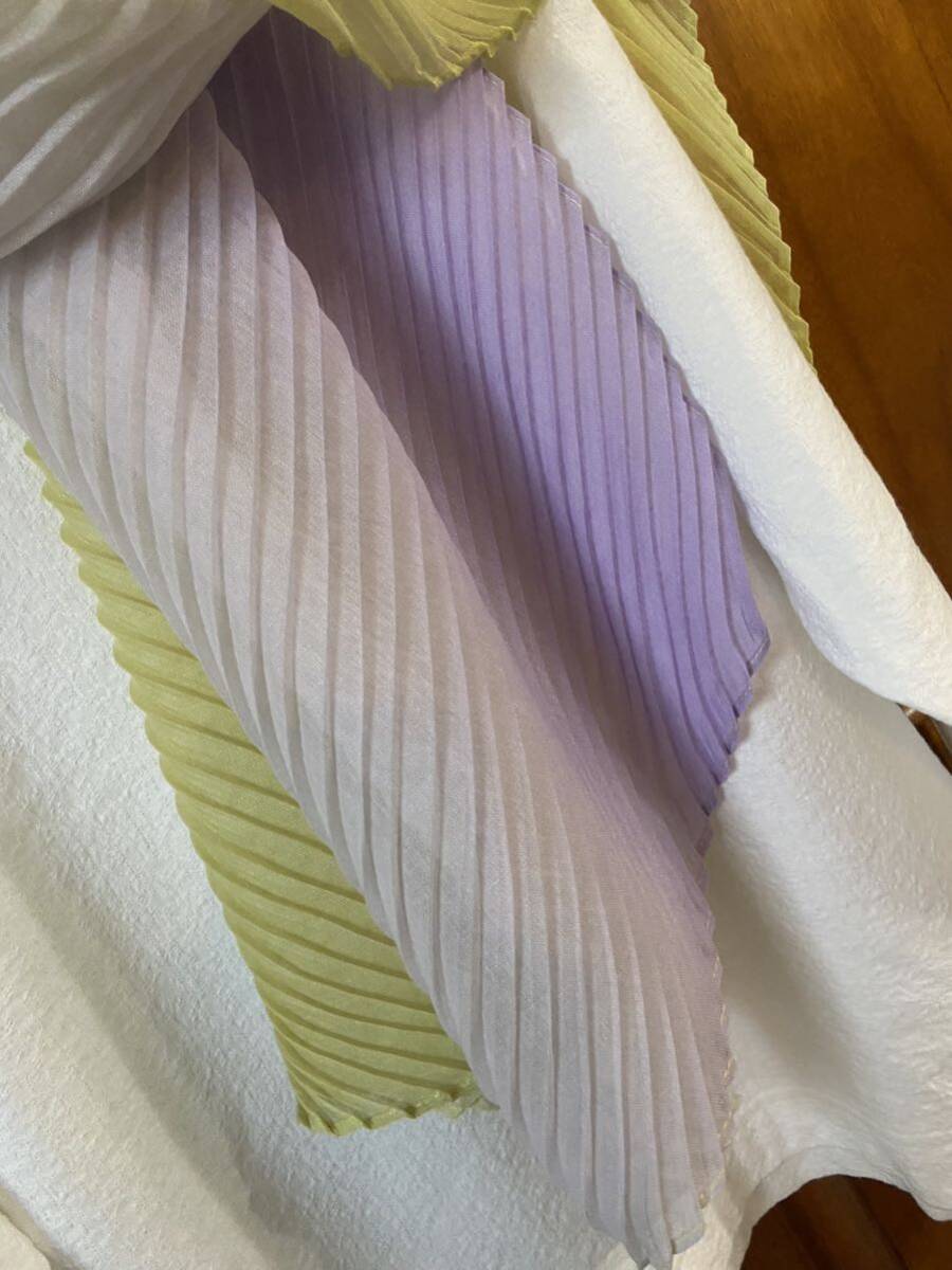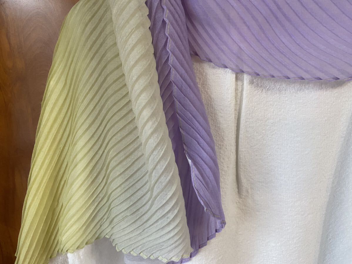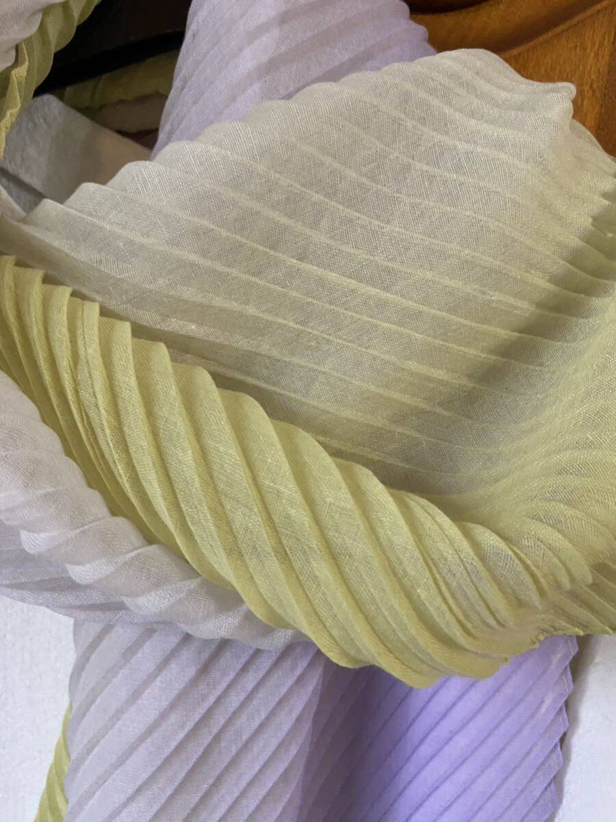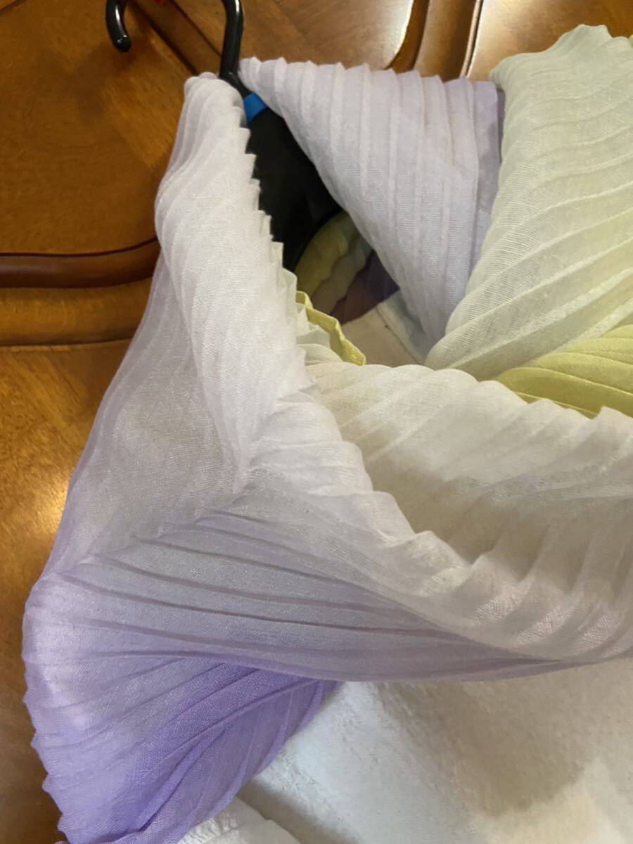 有楽町、マルイでの購入です。柔らかプリーツ素材、グラデーションで、とても素敵です。使うチャンスがありませんでした。ポリエステル100%です。