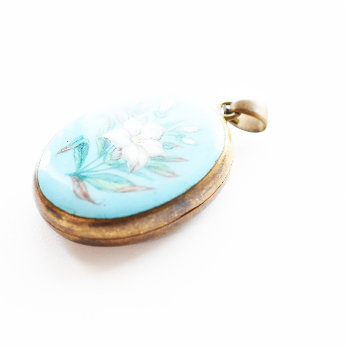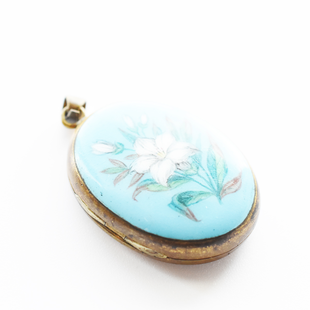 1900年代初頭頃のフラワーモチーフ エナメル ロケットペンダントトップです。