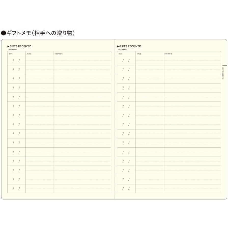 ギフトメモ(いただいたもの、贈ったものをそれぞれ8ページずつ)