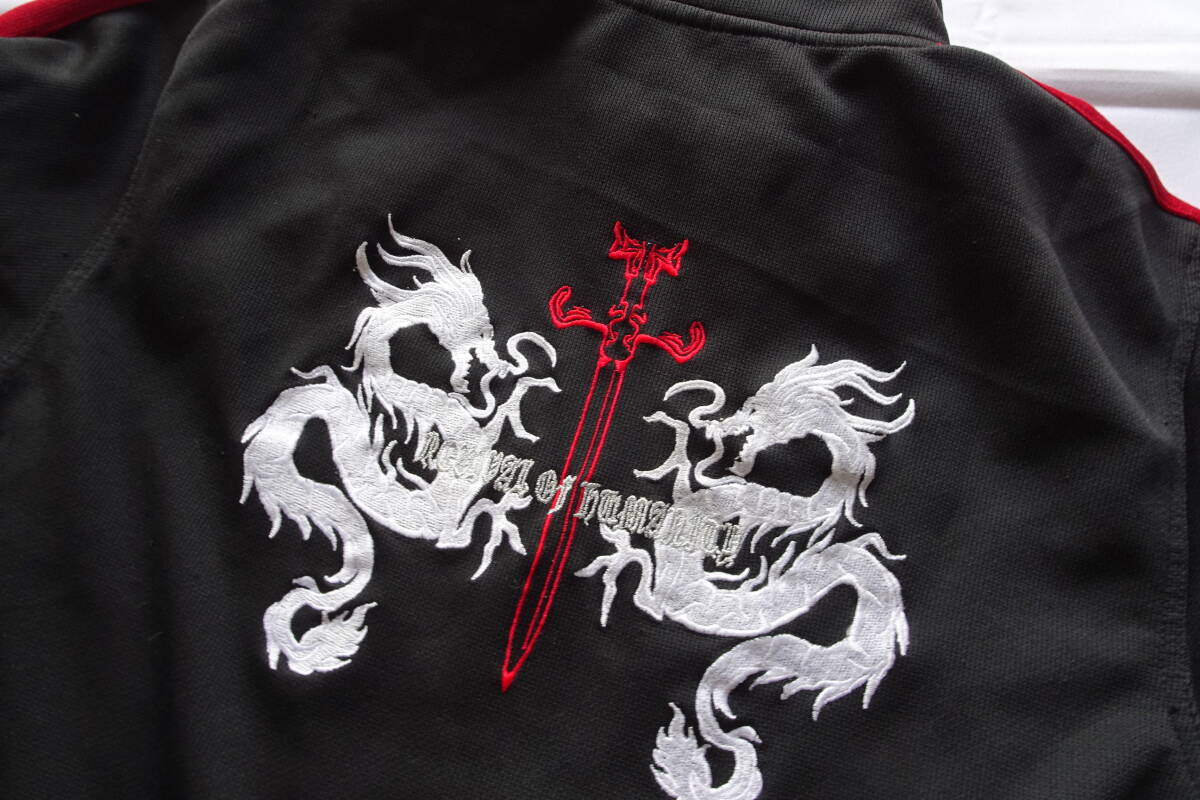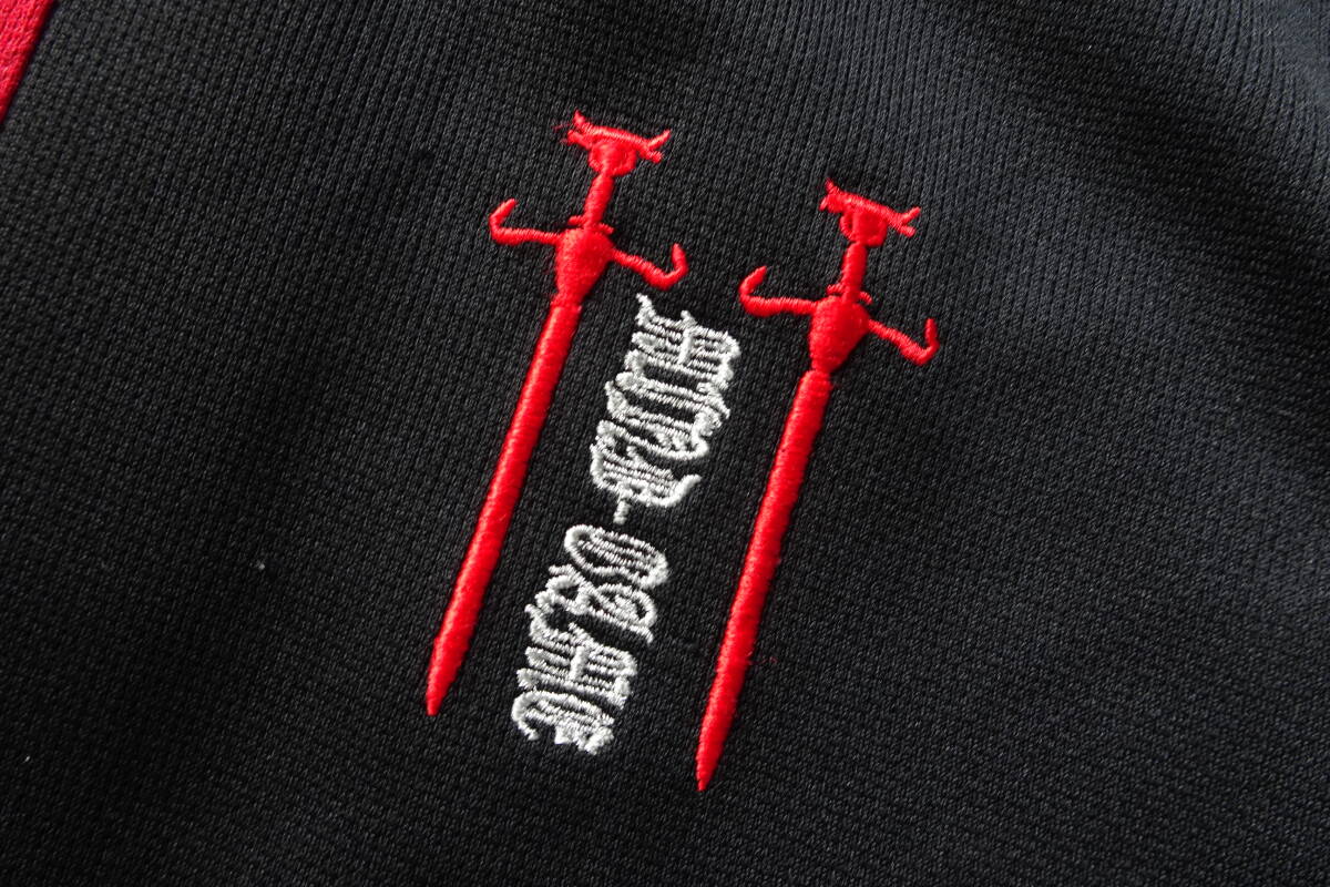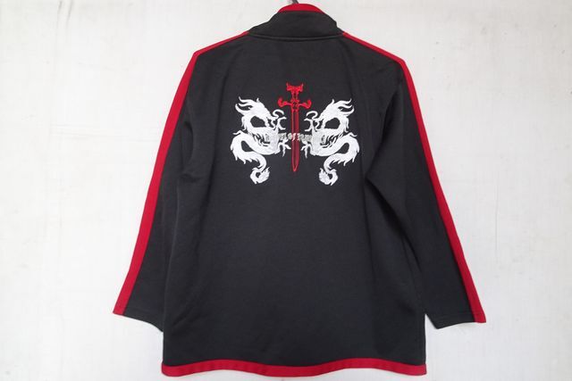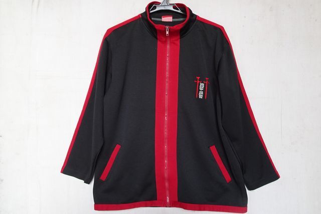 mind game/マインドゲーム/長袖ジャケット/ジャージ素材/前ジップアップ/赤テープ切替/ロゴししゅう/黒/ブラック/LLサイズ(3/29R)