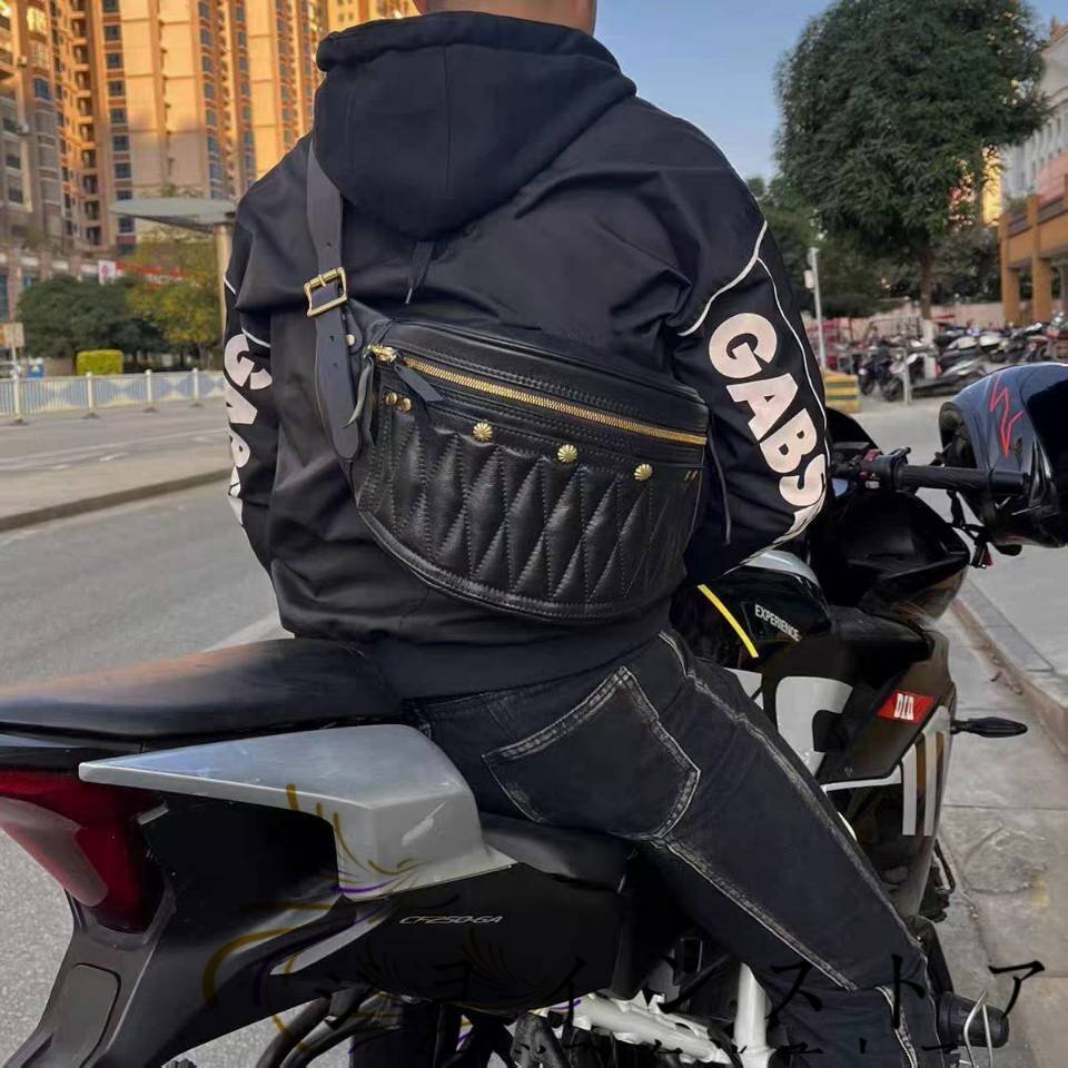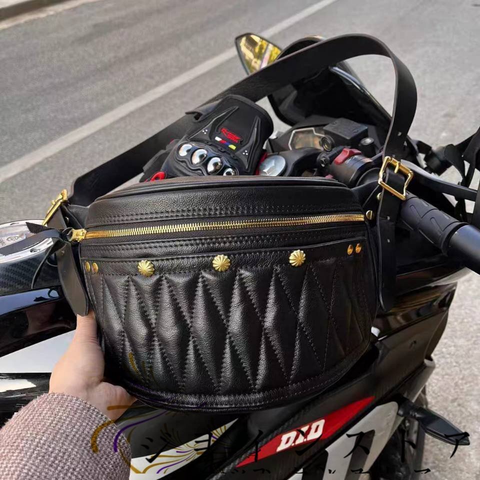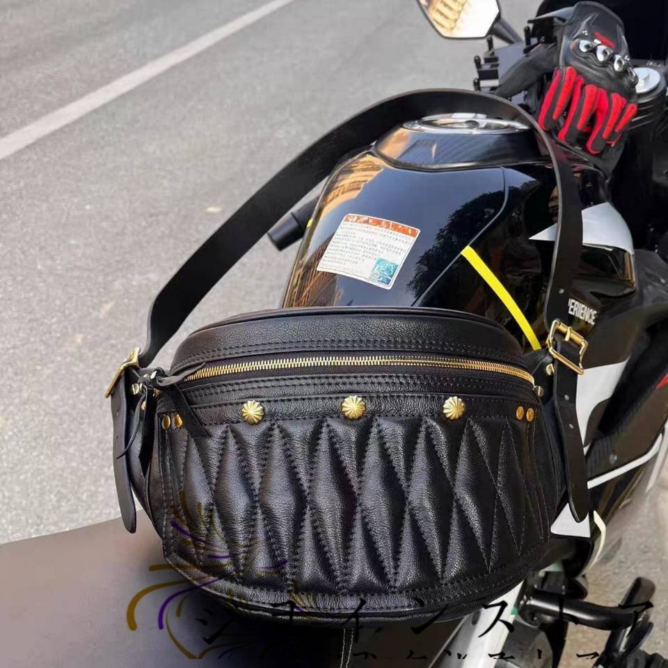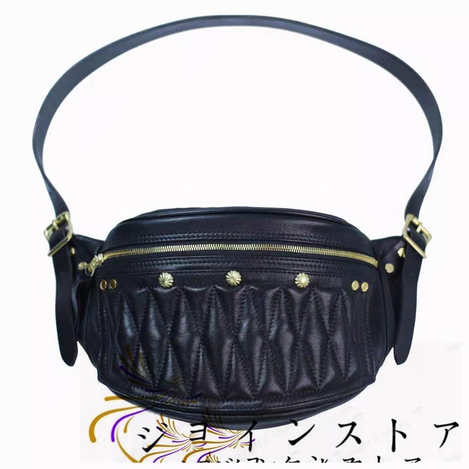 本革 バイカーズ仕様 レトロ チェストバッグ ボディバッグ 黒 ヴィンテージ ハンドメイド メンズ レディース ライダース
