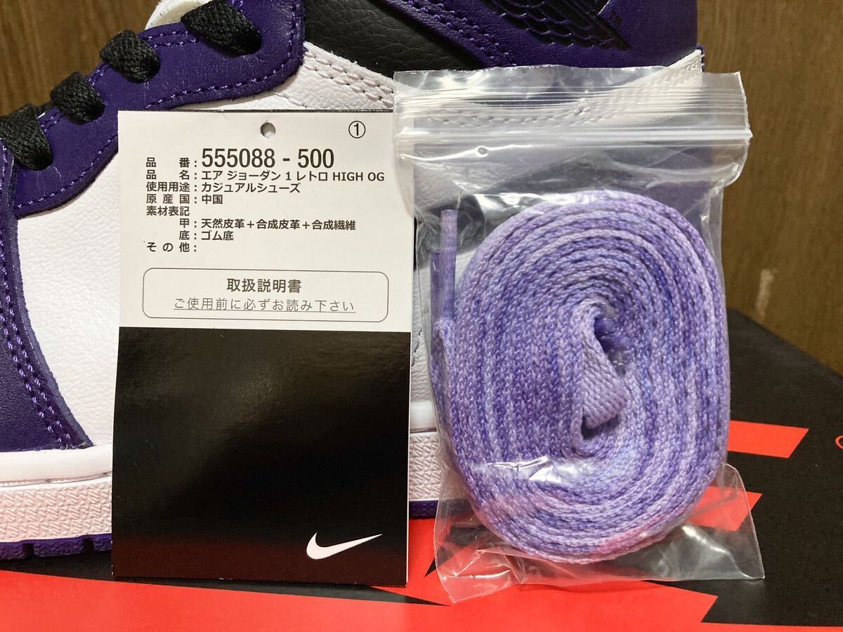 ナイキジャパン黒タグと替えヒモ【マーブルパープル】が付属します。
