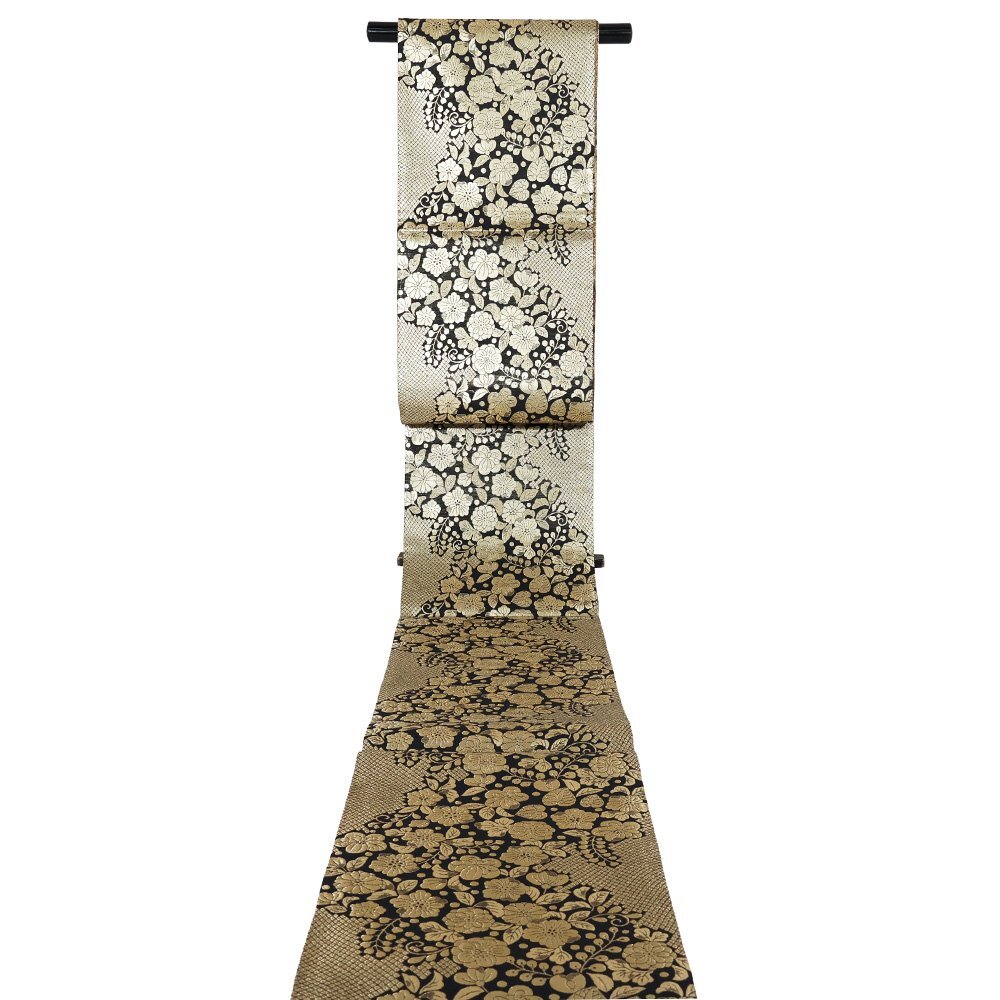 西陣認証ついていません。 裏地は黒・金地辻が花 全通柄。 留袖・付下げ・訪問着用にいかがです。 未使用品 表地:六通 裏地:全通 芯入り仕立て上がり品。 すっきりとした配色で現代の空間に映えるもの。 日本の古典文様をはじめ、長い歴史で培った高い技術に 今様の美しい意匠が光ります。 とても上品な帯です。 仕立て上がり。 上品な仕上がりになっています。 生地の状態は良いと思います。 目立ったシミ汚れはないと思います。 美品です。 |