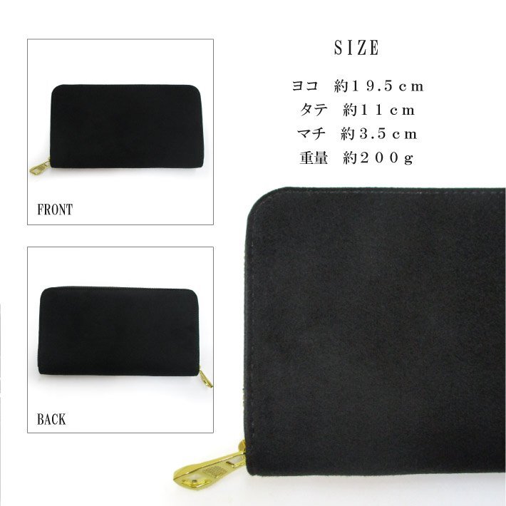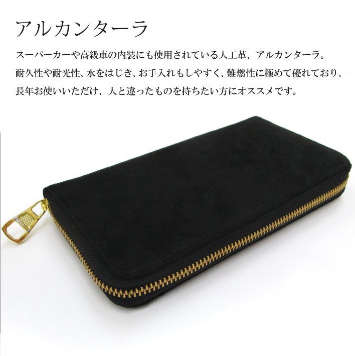 ラウンドファスナーで大きく開く設計で、お札やカードが取り出しやすいです。 お札入れが2か所あり、それぞれに仕切りがついているので、レシートやチケットなどを仕分けできます。 カード入れも8か所あり、しっかり収納できる機能性の高い財布になっています。 アルカンターラ生地で触り心地が良く、高級感があります。 表側の素材は、スーパーカーや高級車の内装にも使用されているアルカンターラという、クルマ好きには高級内装素材として知られている人工革です。 スエードに似た高級感ある見た目ですが、より耐久性や耐光性、水もはじきやすく、難燃性が極めて優れていると同時に肌触りの良い素材です。 液体の吸収力が低く、水に濡れても乾けば元通りの風合いを取り戻します。汚れ落としが簡単です。 耐久性に優れているので長年お使いいただけます。人と違ったものを持ちたい方にオススメです。 誕生日プレゼント・クリスマス・バレンタイン・父の日・母の日などの贈り物にも最適です。 ■カラー:BLACK(ブラック) ■素材:外側 アルカンターラ、内側 牛革 ■サイズ(約):横19.5cm×縦11cm×マチ3.5cm ■重量:約200g ■仕様:札入れ×2、小銭入れ×1、カード入れ×8、フリーポケット×2 ※一部共通画像使用 ※ご注意※革は自然が造り出した理想的な繊維です。 自然由来の素材のため革には細かなシワや傷跡・トラ等が存在する場合があります。 これらは本革である証拠であり、革本来の特長であり、魅力でもあります。 ※新品ではございますが製造上の過程により商品によっては細かな傷やへこみ、剥げ等がある場合が御座います。 また、多少の縫製のゆがみ・ノリの付着がある場合がございます。 ※ご覧のモニターやプラウザの設定、照明等により、画像と実物の色合いが、若干異なる場合が御座います。 予めご理解頂いた上でご購入下さい。 | |