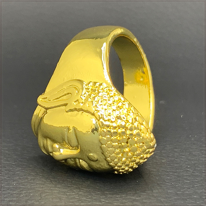 ゴールデン ブッダ フェイス 仏陀 佛 仏像 仏教 ありがたい 金の大仏様の顔 デザイン 25mm ワイド リング です。
