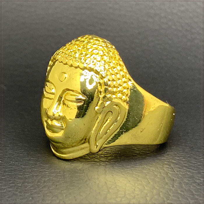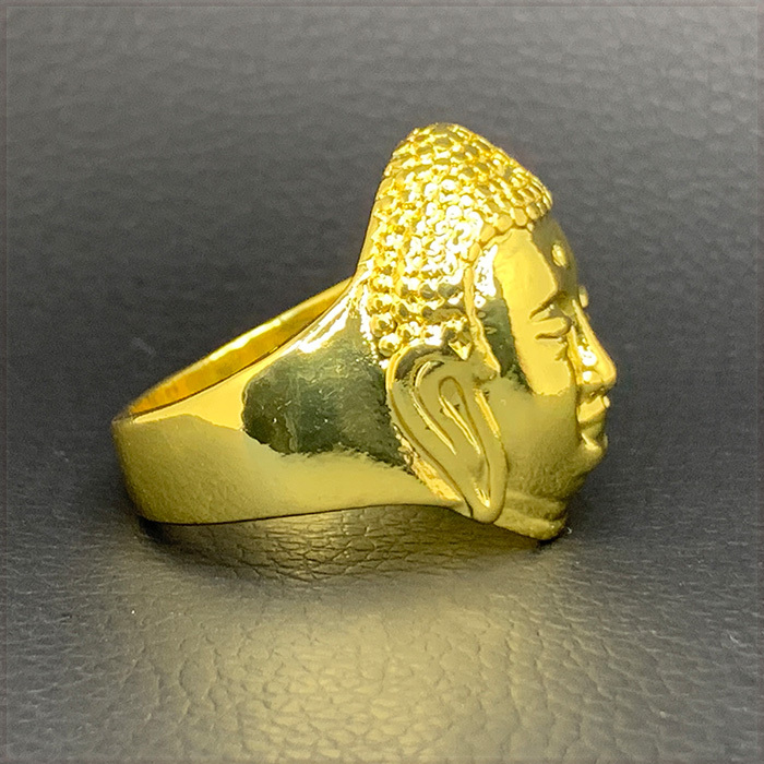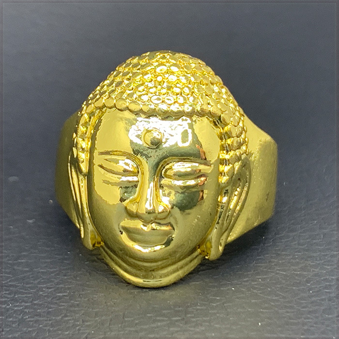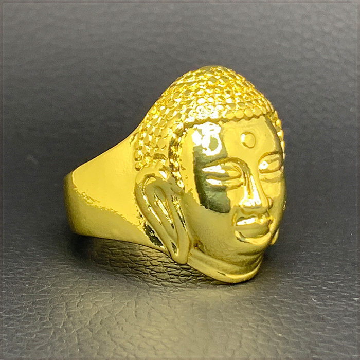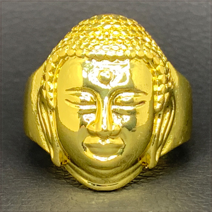 [RING] ゴールデン ブッダ フェイス 仏陀 佛 仏像 仏教 ありがたい 金の大仏様の顔 デザイン 25mm ワイド リング 24号
