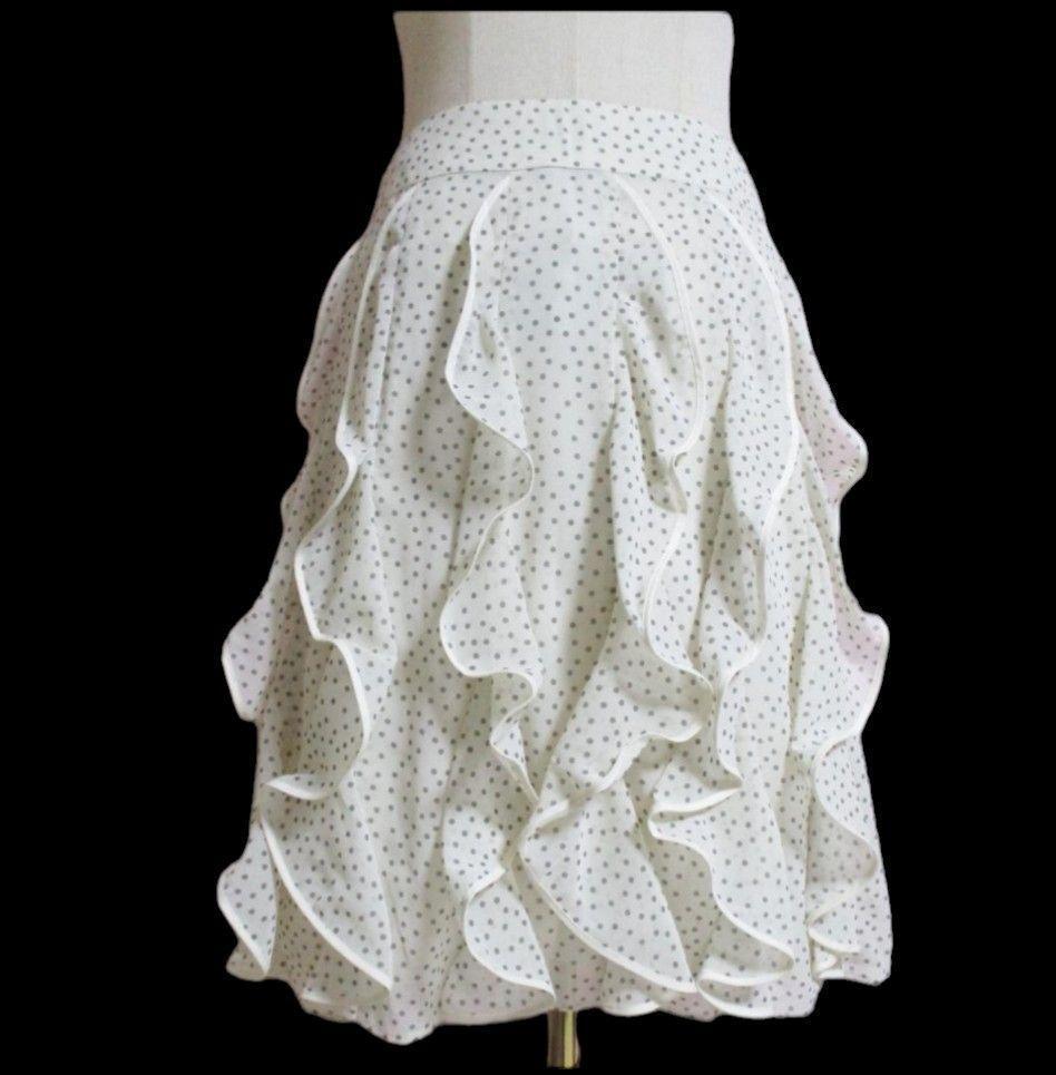【未使用タグ付】22OCTOBRE ヴァンドールオクトーブル ラッフルフリルスカート ドット 38 手洗い 膝丈スカート 水玉 淡いベージュ系