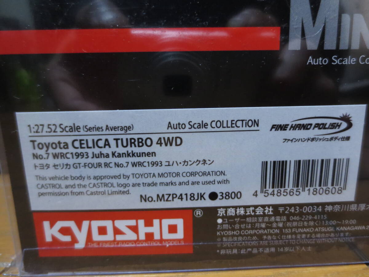 商品は京商 ミニッツ トヨタ セリカ GT-FOUR 1993 ユハ・カンクネン MZP418JKなります。
