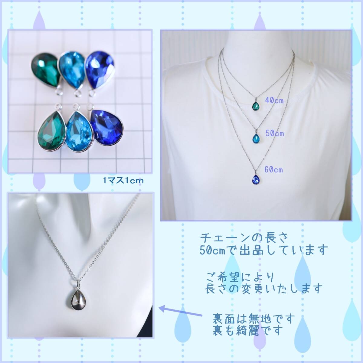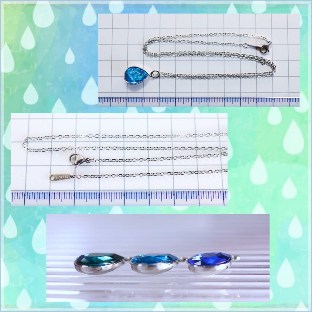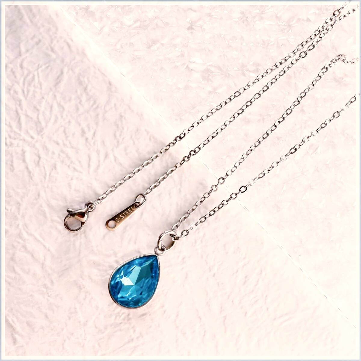 N7943/オールステンレス ブルージルコンカラー 青緑 雫 硝子のしずくネックレス ドロップペンダント 青の洞窟 海底色 上質ステンレス