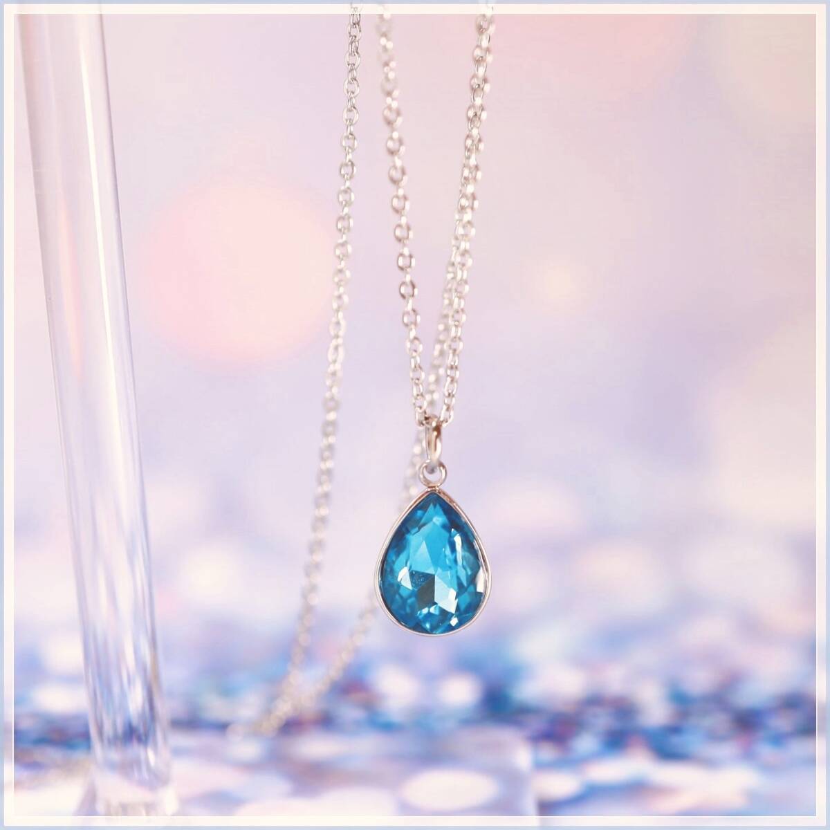 鮮やかでとても綺麗なブルージルコンカラーのしずく型ラインストーンペンダントです。