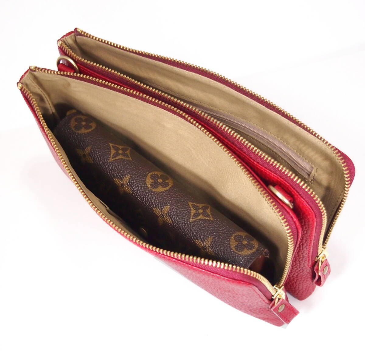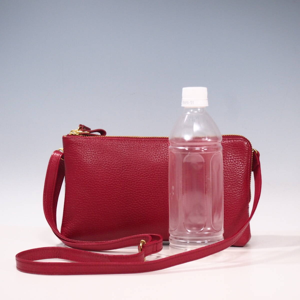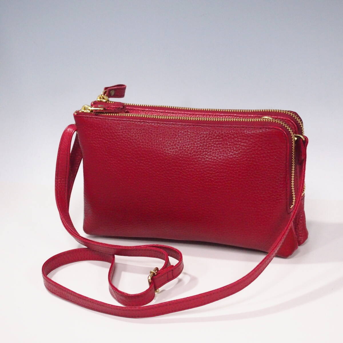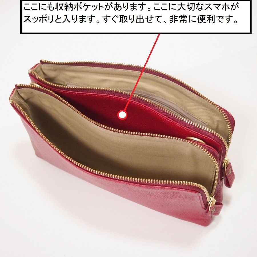 ▲新品★ハンドメイド★日本製★ソフト牛革★サコッシュ★お財布ポシェット★L字ファスナー★斜め掛けショルダーバッグ★アカ色★スマホ★