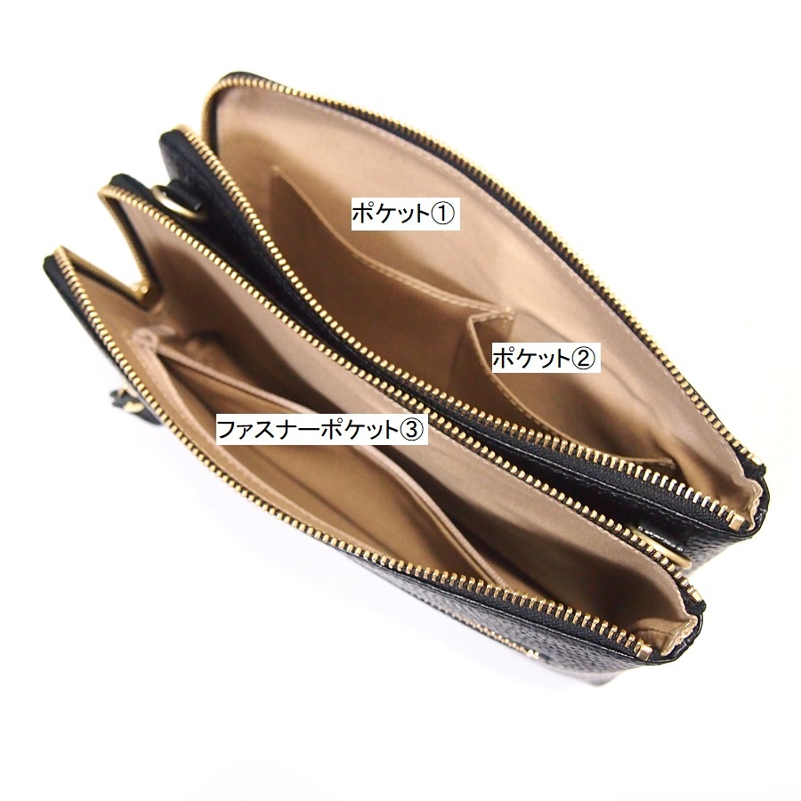 ●L字ファスナーでガバっと大きく開き、出し入れも楽々。実際にお買い上げの方からも、「L字ファスナーがとても使いやすい。長財布もスッポリ収まる。お買い物のときの財布の出し入れのモタツキから解放された。」と多くの評価をいただいております。