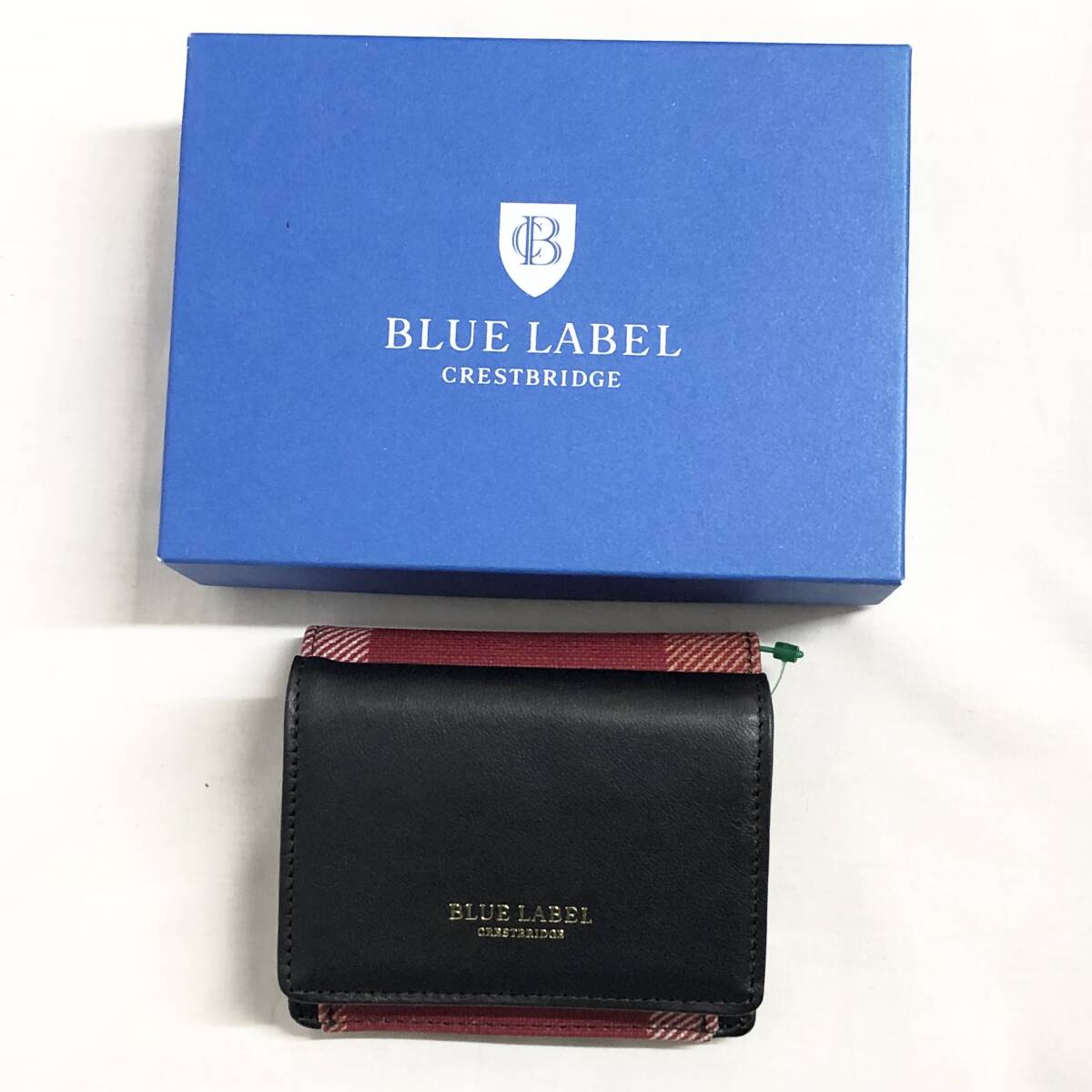 ○★新品 未使用 ブルーレーベル パーシャルクレストブリッジチェックPVC二折財布 ブラック★○