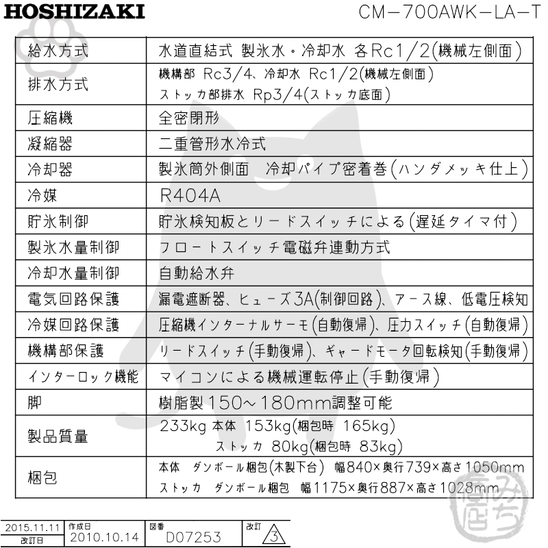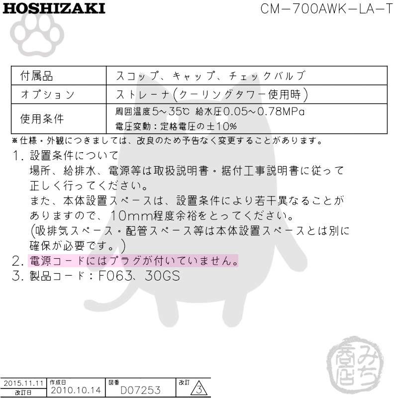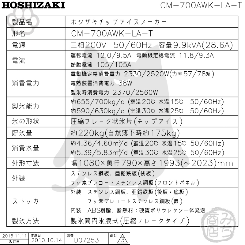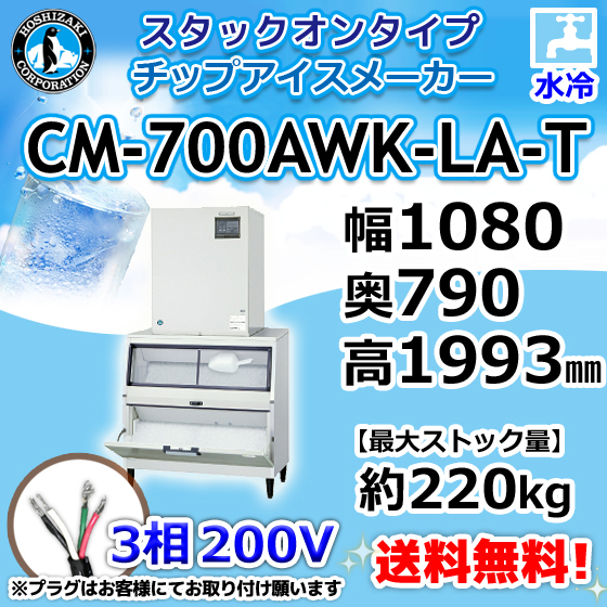 CM-700AWK-LA-T ホシザキ 製氷機 チップアイス スタックオンタイプ 水冷式 幅1080×奥790×高1993mm