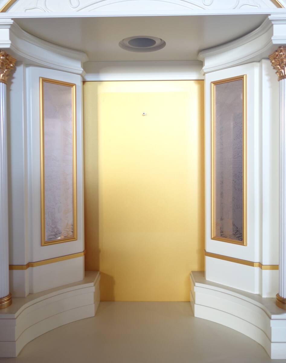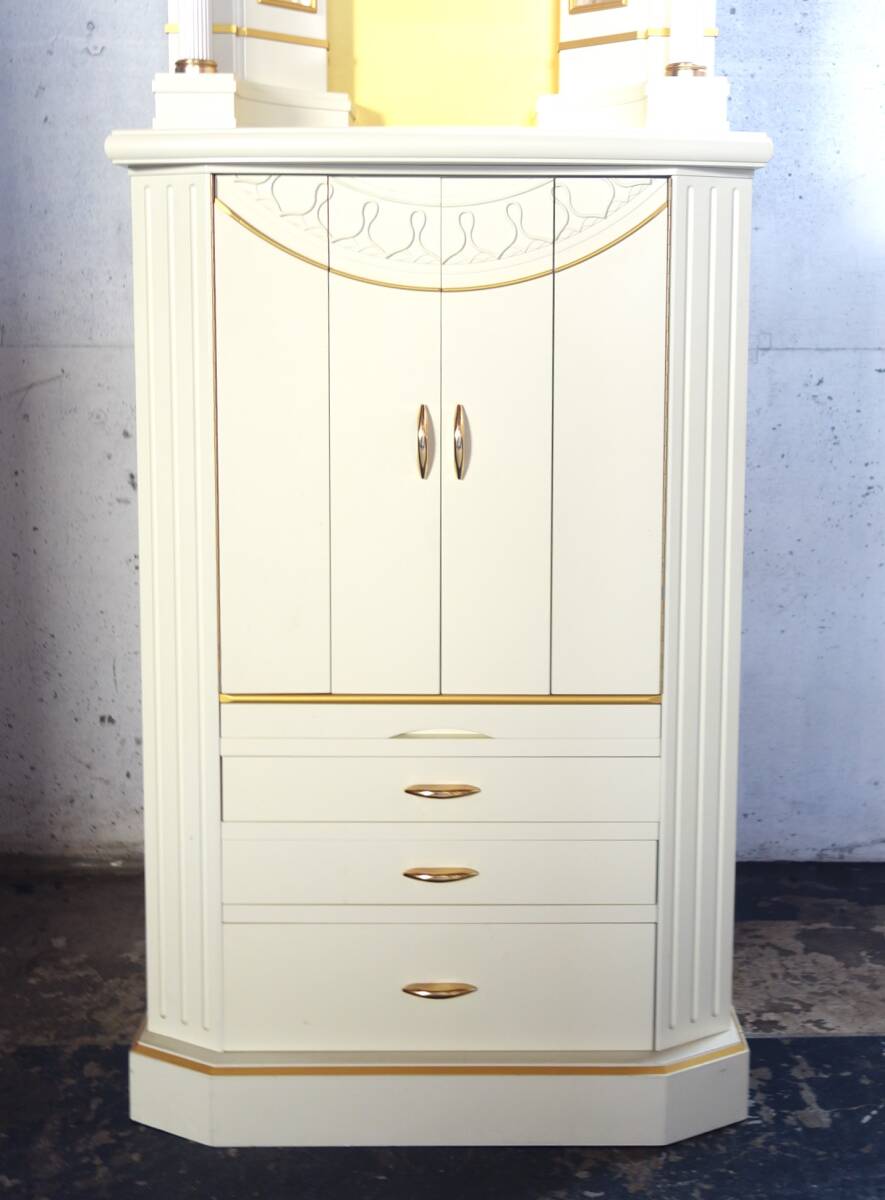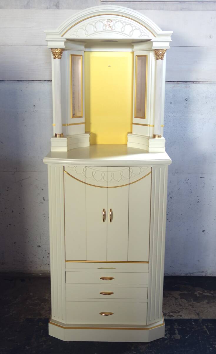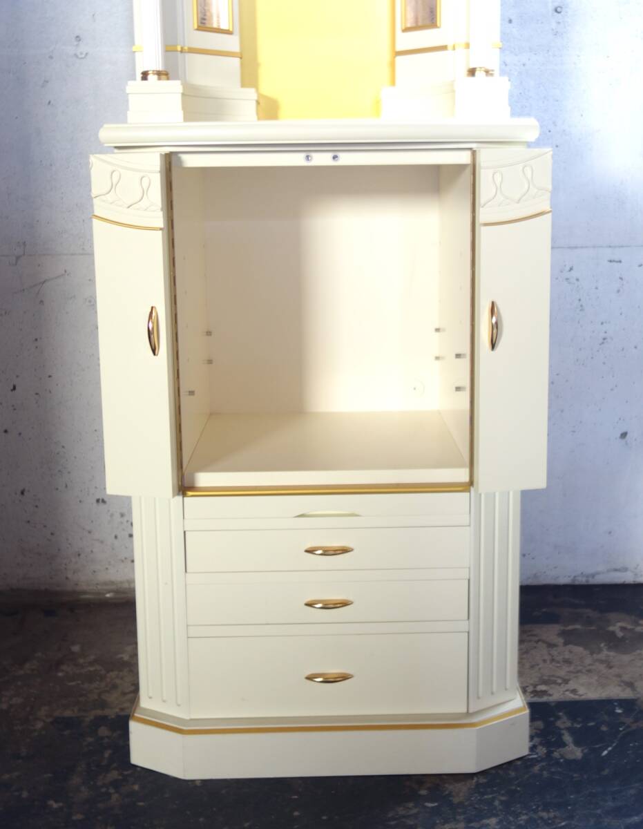 *幸福の科学 *世界伝道型御本尊用祭壇 祭壇 飾棚 本尊置 *お色 ホワイト系 *スライド天板 引き出し *ライト付(配線カットされています) *上下分割式 *エル カンターレ 大川隆法 |