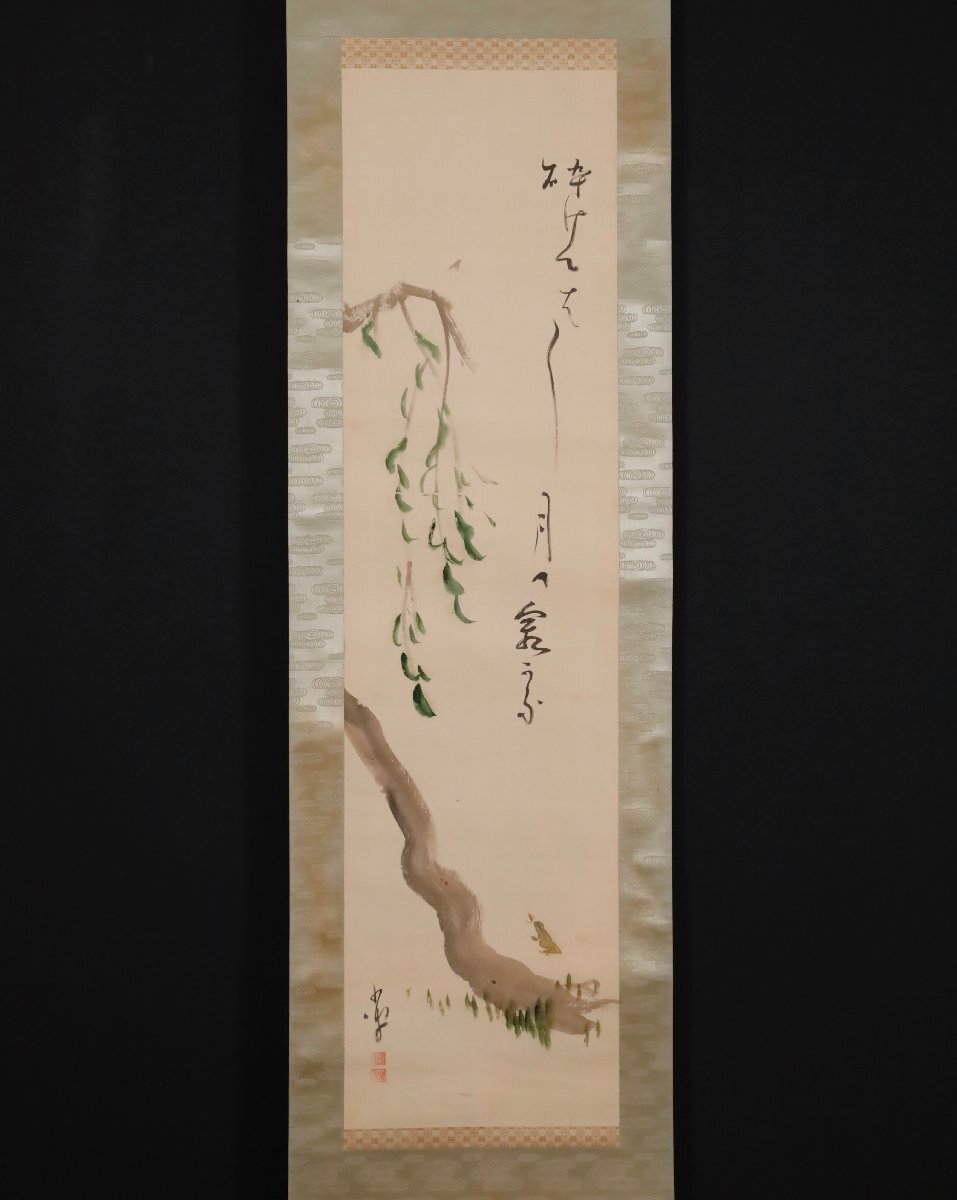 【模写】吉】10526 巌谷小波 柳画賛 巌谷一六の子 作家 児童文学者 俳人 茶掛け 茶道具 書 掛軸 掛け軸 骨董品