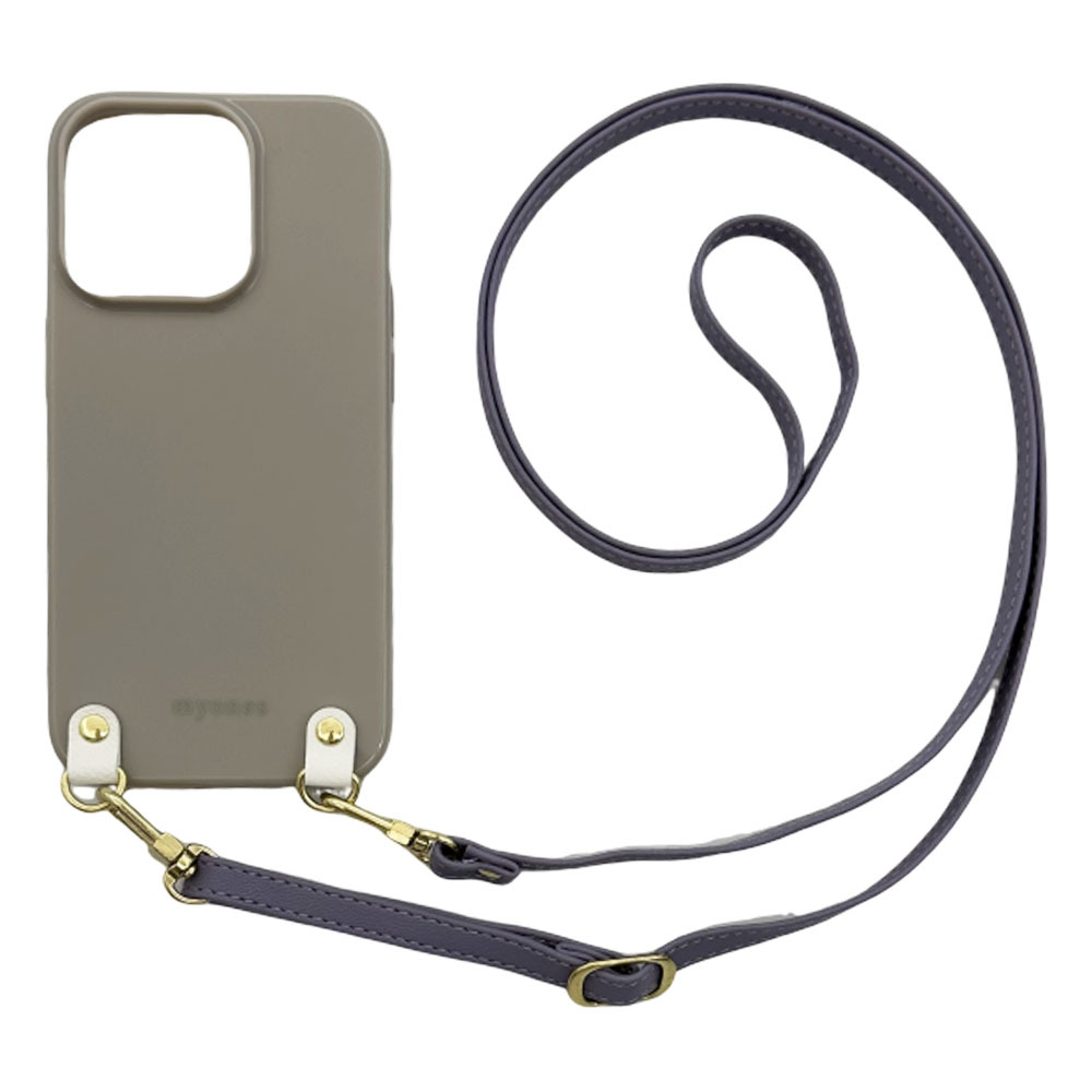 iPhone14 Plus スマホケース(くすみグレー/アッシュラベンダー)ソフトケース ストラップ 肩掛け 首かけ