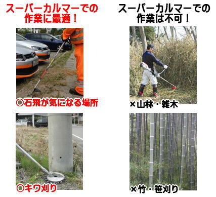 カルマーの「安全性」とバッテリー刈払機の「静音性」を両立させ、人や構造物の多い生活空間における草刈りに最適です。