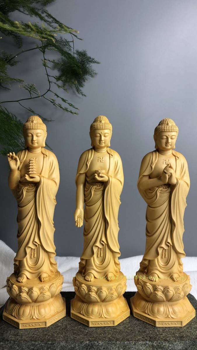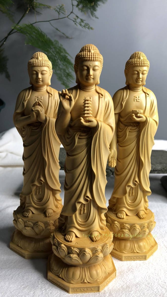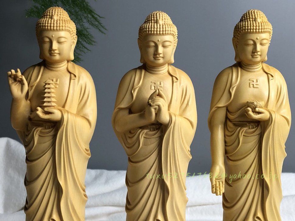 新作 木彫仏教 精密彫刻 仏師で仕上げ品 薬師如来・釈迦如来・阿弥陀如来 三世仏 一式