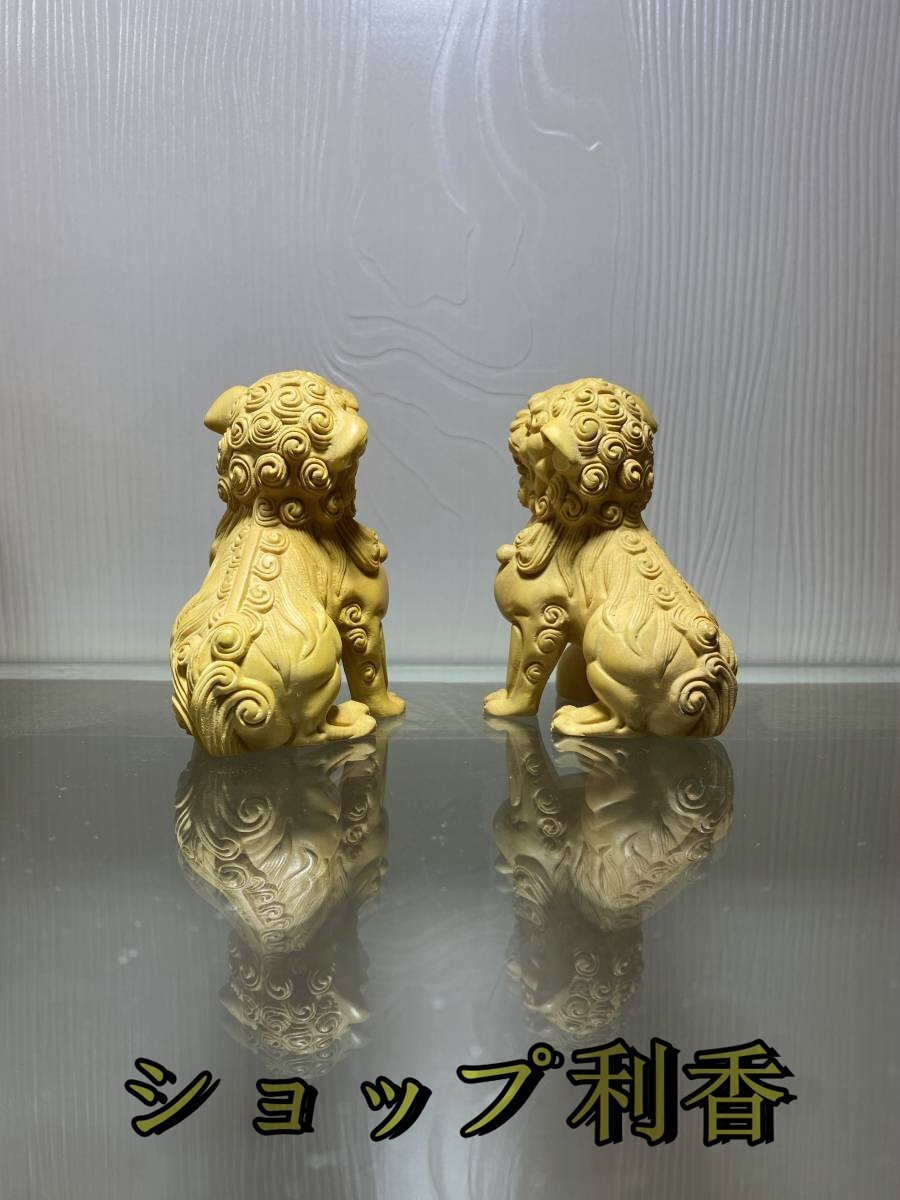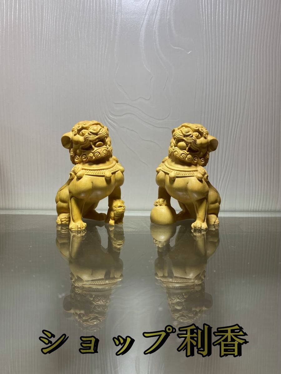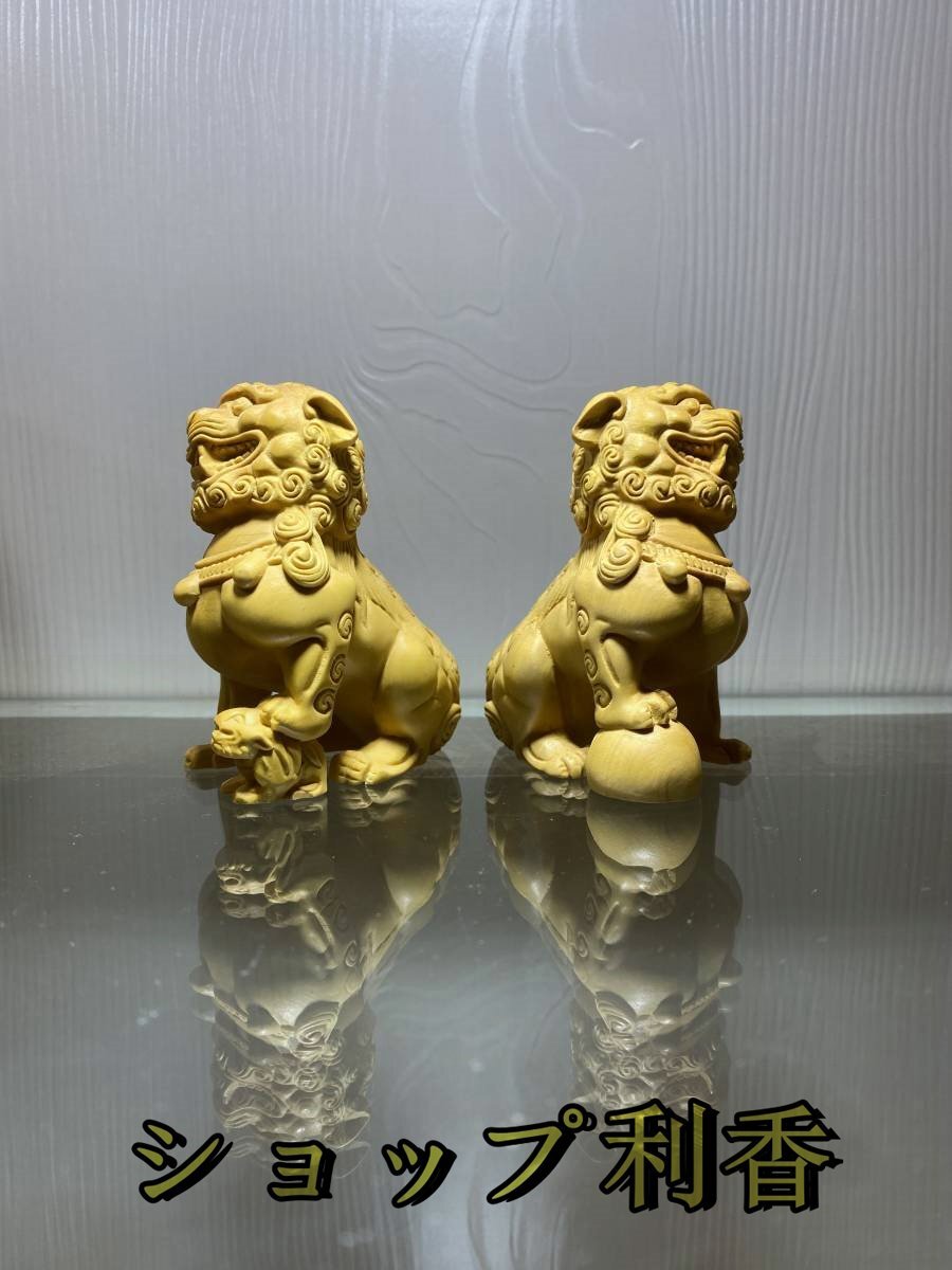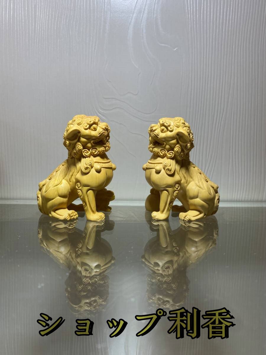一式 獅子 置物 ライオン 緑起物 飾り置物 木彫 祈る 招福 精密彫刻 工芸品 美術品