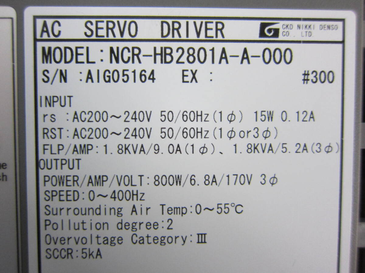 CKD AC SERVO DRIVER NCR-HB2801A-A-000 サーボドライバ NIKKI DENSO VPH