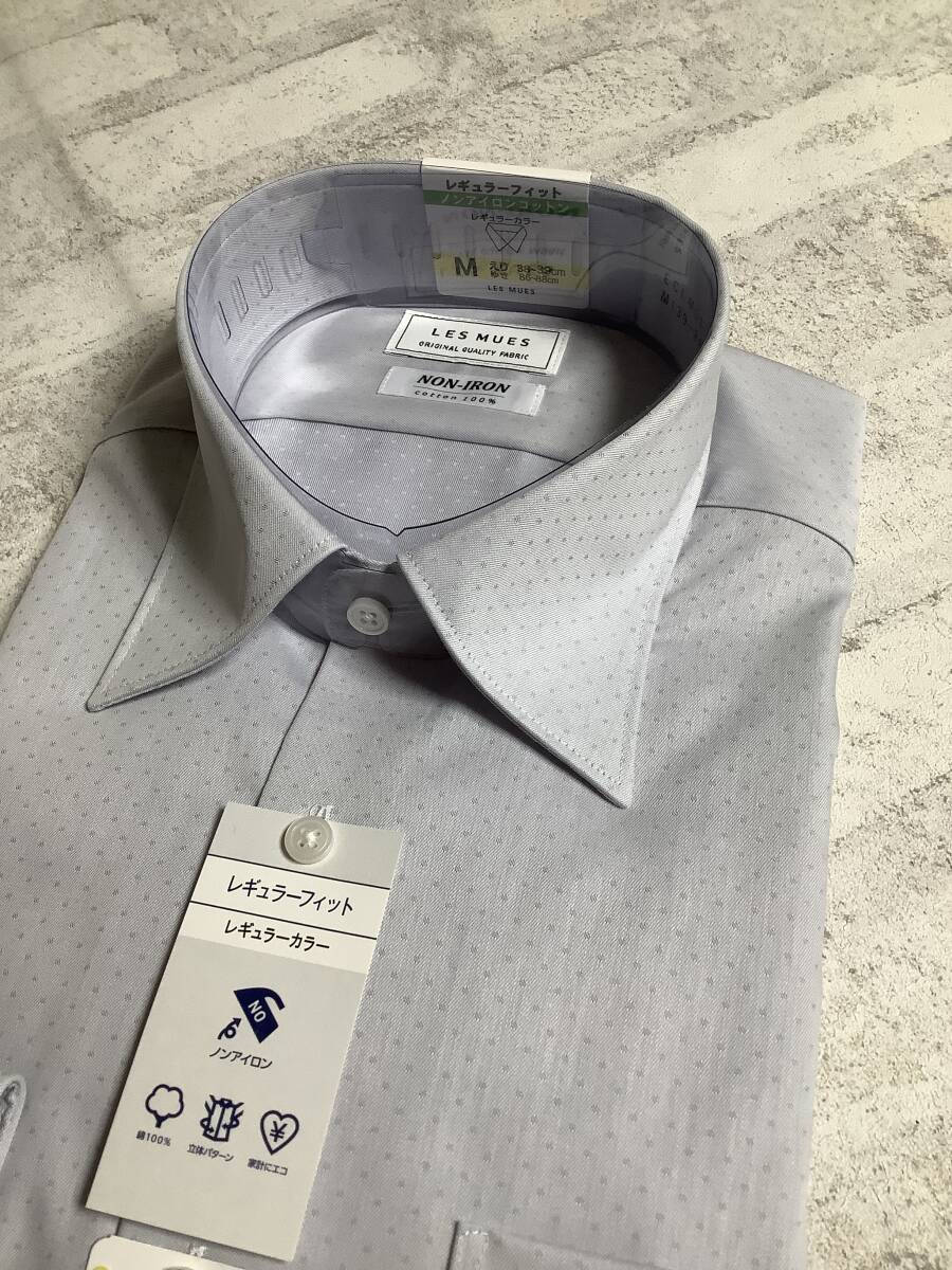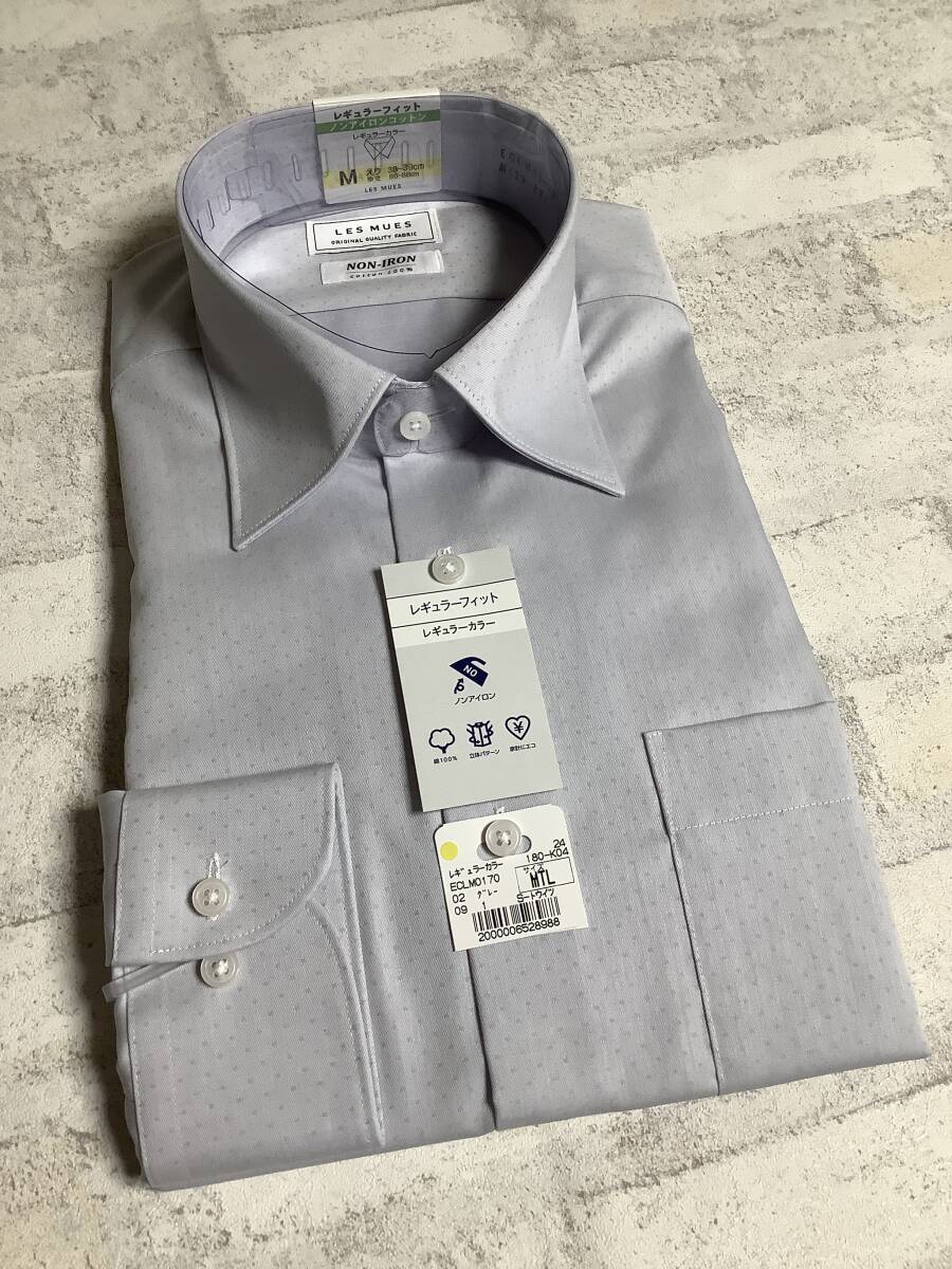 新品未使用 手の長い39-88長袖Mサイズ グレードットドビー生地のシルプルレギュラーカッターシャツ★ドレスシャツ 定価4,990