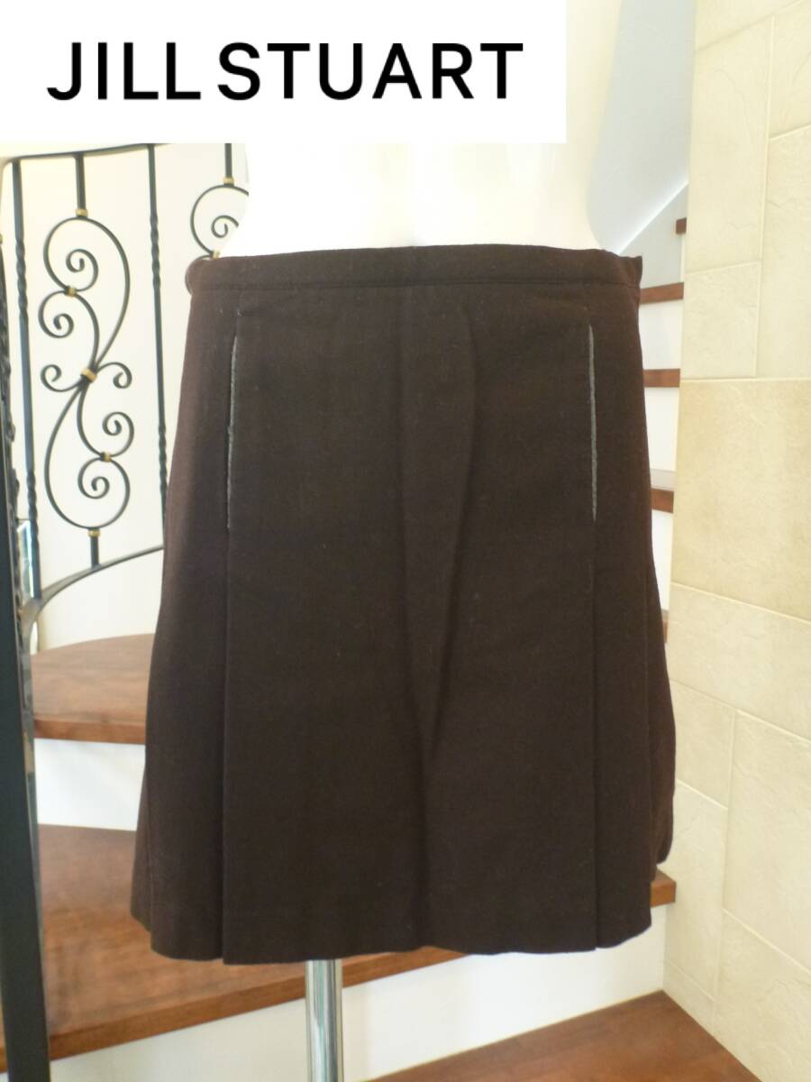 JILLSTUART ジルスチュアート★茶 ブラウン 部分プリーツ スカート 2 M相当