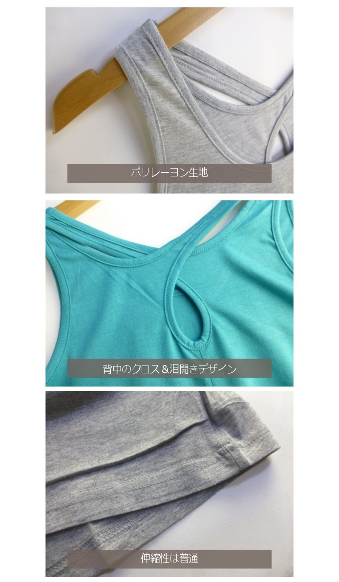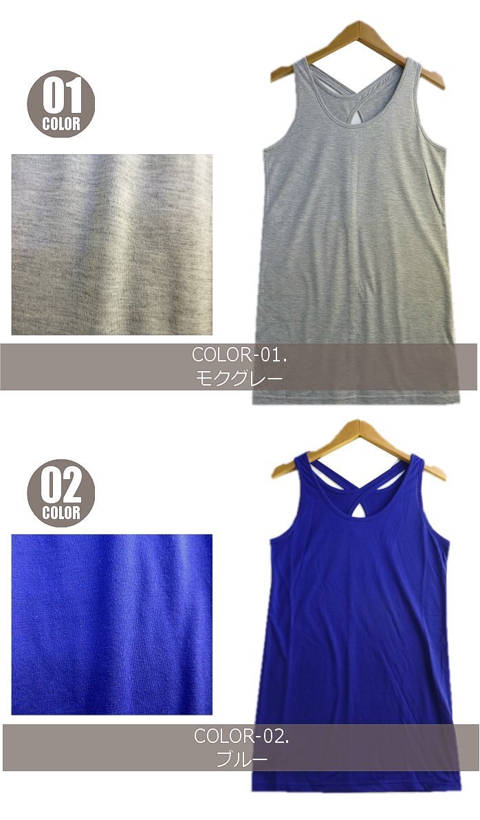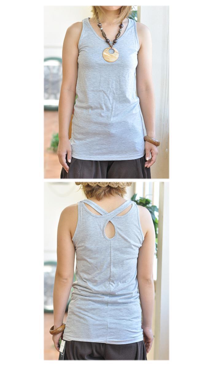 定番のタンクでバッククロスがとてもお洒落な丈長めのタンクになります。心地いい素材感で伸縮ありです。