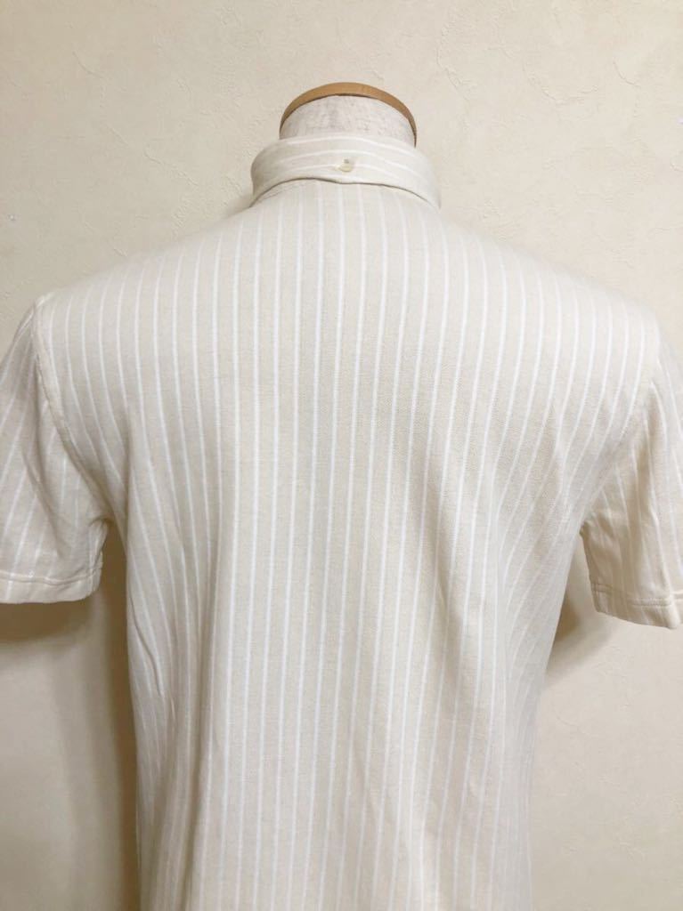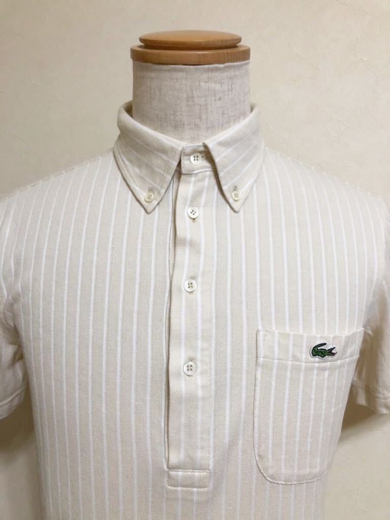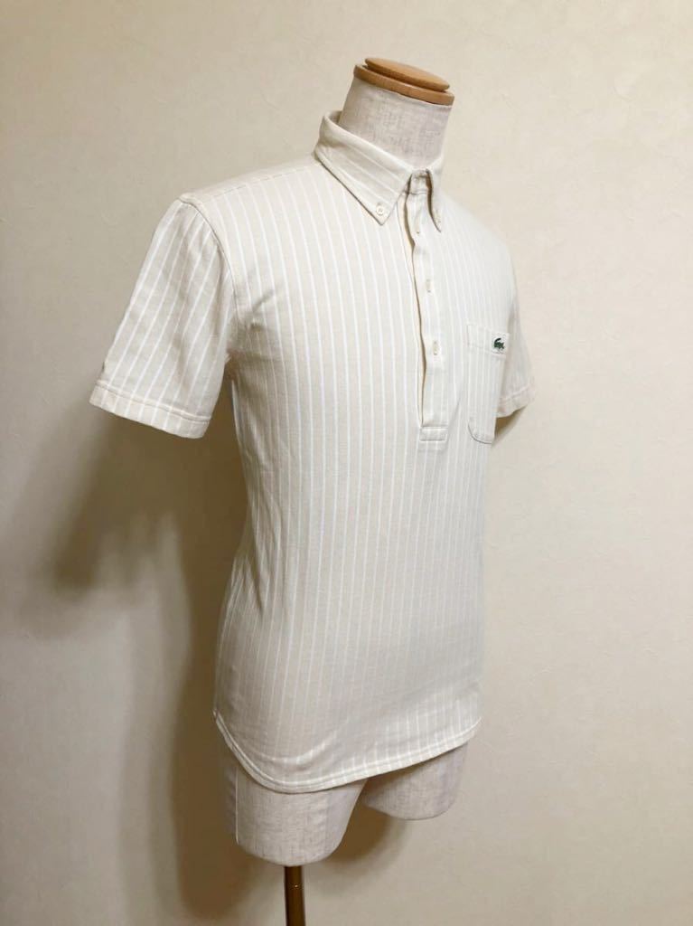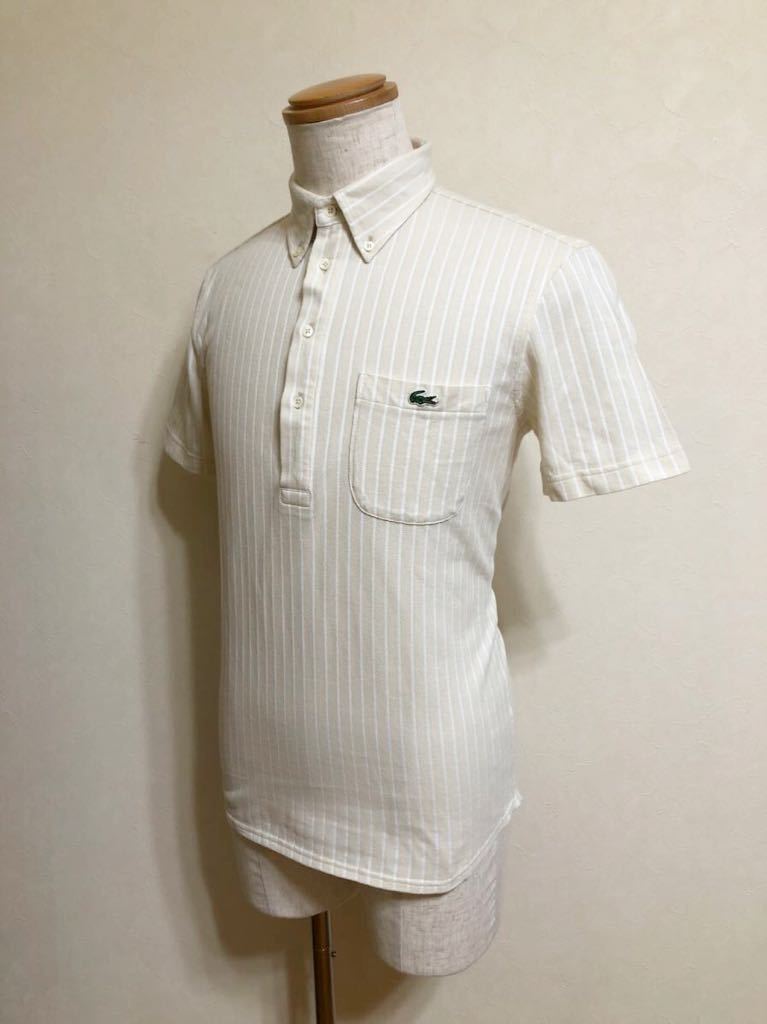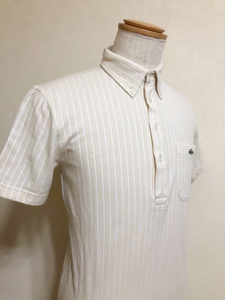 【美品】 LACOSTE ラコステ ボタンダウン 鹿の子 ポロシャツ ストライプ クリーム ホワイト トップス サイズ3 半袖 KH979S ファブリカ
