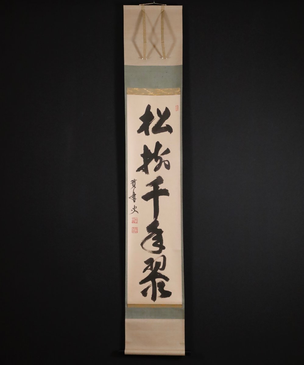 【模写】吉】10564 澤井進堂 書 松樹千年翠 共箱 臨済宗 妙心寺派 寶林室 大乗寺 仏教 大分県の人 茶掛け 茶道具 禅語 掛軸 掛け軸 骨董品