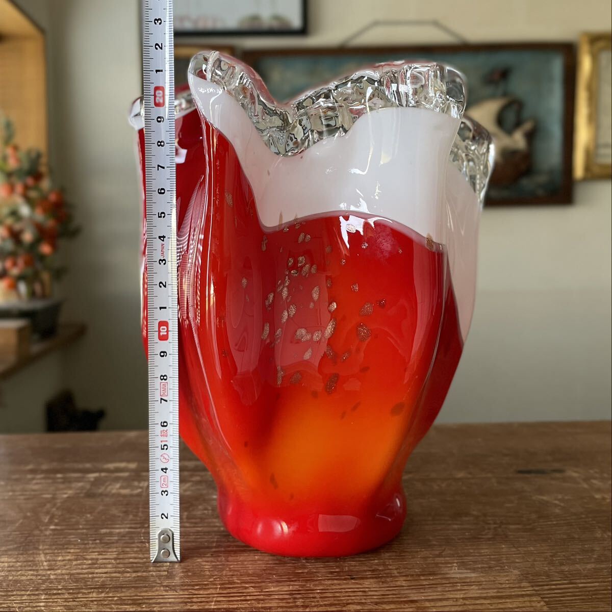 SNT222 クラタクラフト ヴィンテージ フラワーベース 花瓶 昭和レトロ 工芸ガラス
