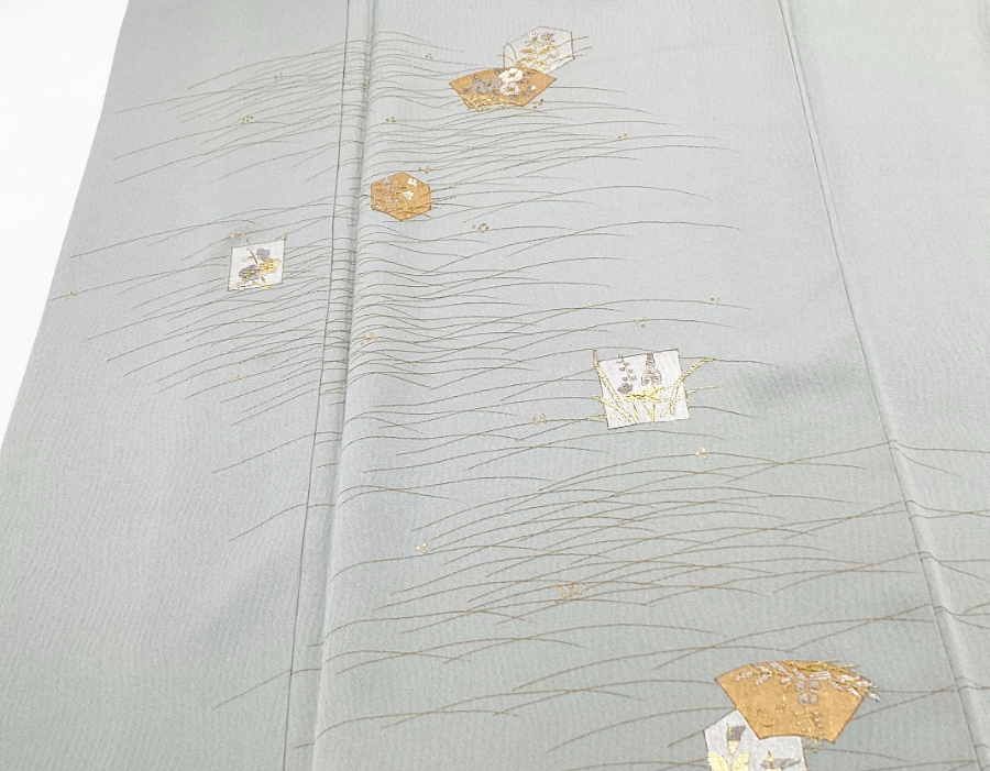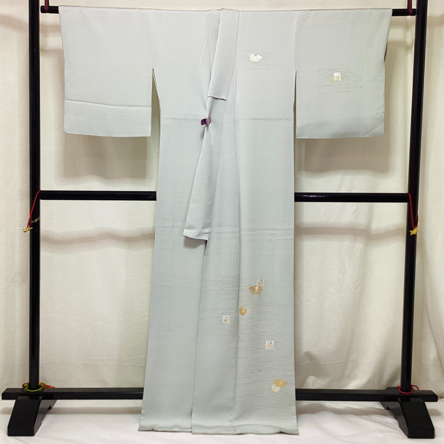 コメント | 中古の正絹お仕立て上がり附下袷きものです。 金彩刺繍加工竹屋町刺繍入りのお品物です。 沢潟縫紋入りのお品物です。 使用感少ない未使用に近い綺麗な品物です。 カラオケ、衣装、リメイク、生地、素材としてもおすすめです。 |