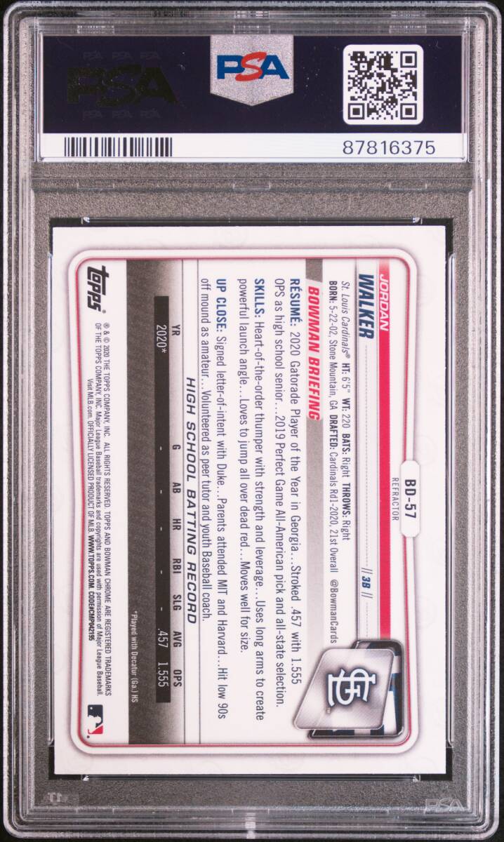 2020 Bowman Chrome Draft、カードNo.BD57「JORDAN WALKER」選手の
