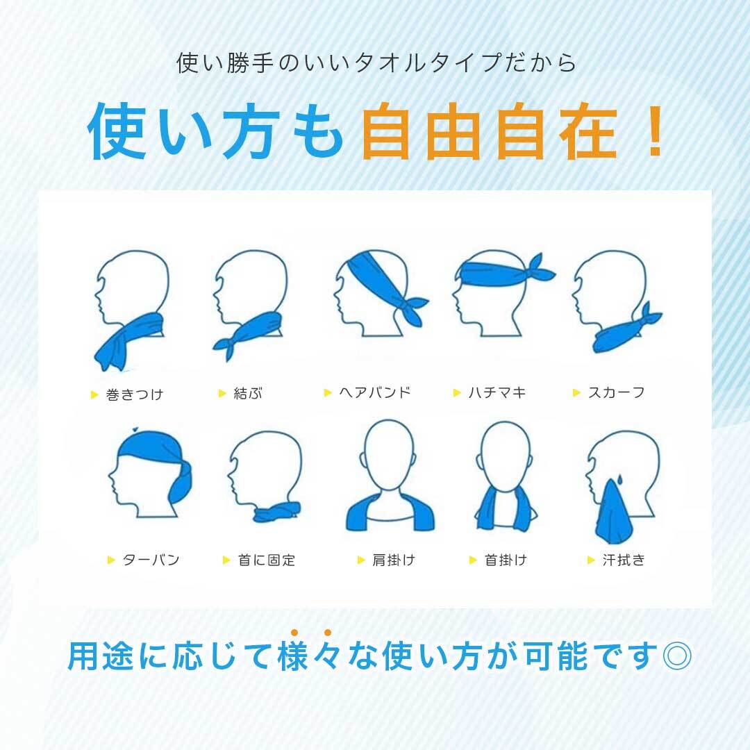 【UVカット効果】気分も肌も心地よく、UVカットで真夏の強い紫外線からお肌を守ってくれるので、頭や肩から掛けて身体を冷やしつつ、日焼け防止もできます。肌にやさしく抗菌機能もあり、デリケートな赤ちゃんや小さなお子様のお肌にも安心して使えます。