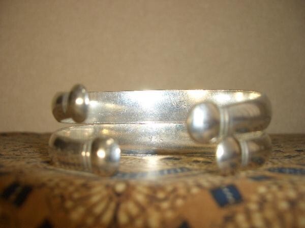 【商品説明】洋銀製の腕輪2点セットです。伸縮可能の為フリーサイズです。*純銀製ではなく、洋銀(銅の合金)製です。【サイズ】内径約17.5センチ・太さ約1.3センチ【平成26年6月21日出品】