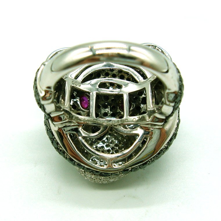 R933:K18WG ブラックダイヤ ダイヤ ルビー オニキス リング (#13)