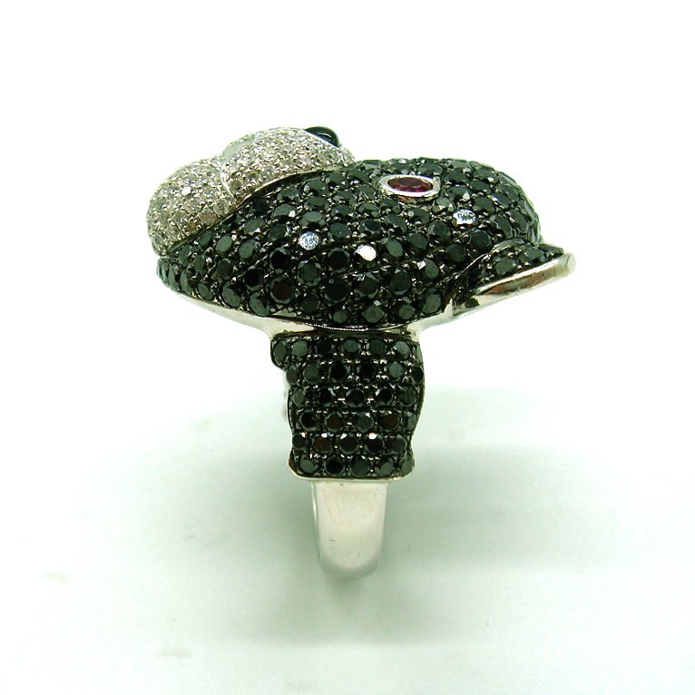 立体的な口元にはダイヤが、顔部分には大粒の黒ダイヤが敷き詰められています。