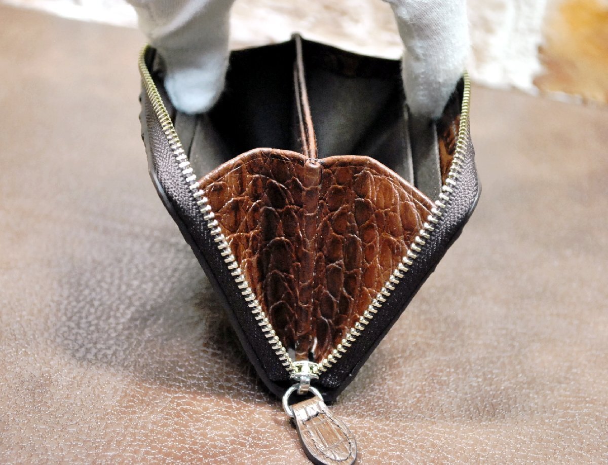 クロコダイル革付属本革カード&コインケース (艶有メタル仕上げ) |