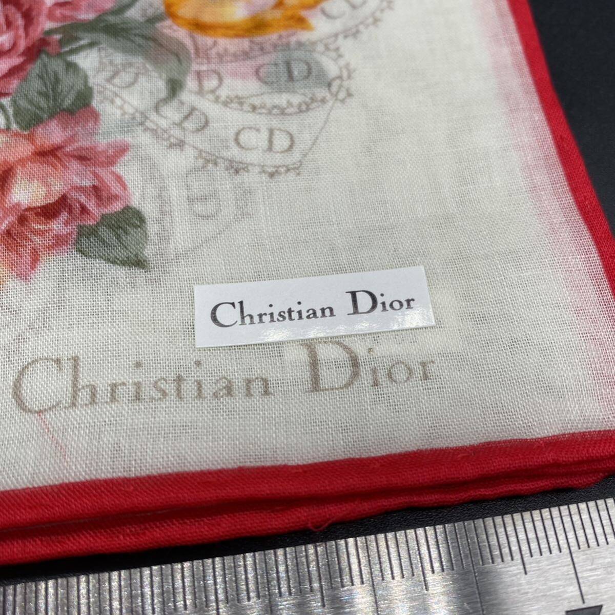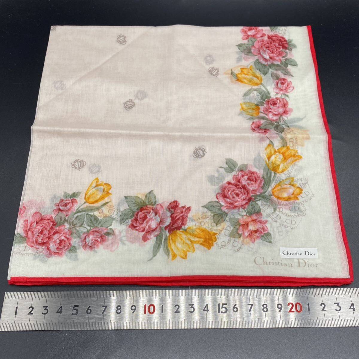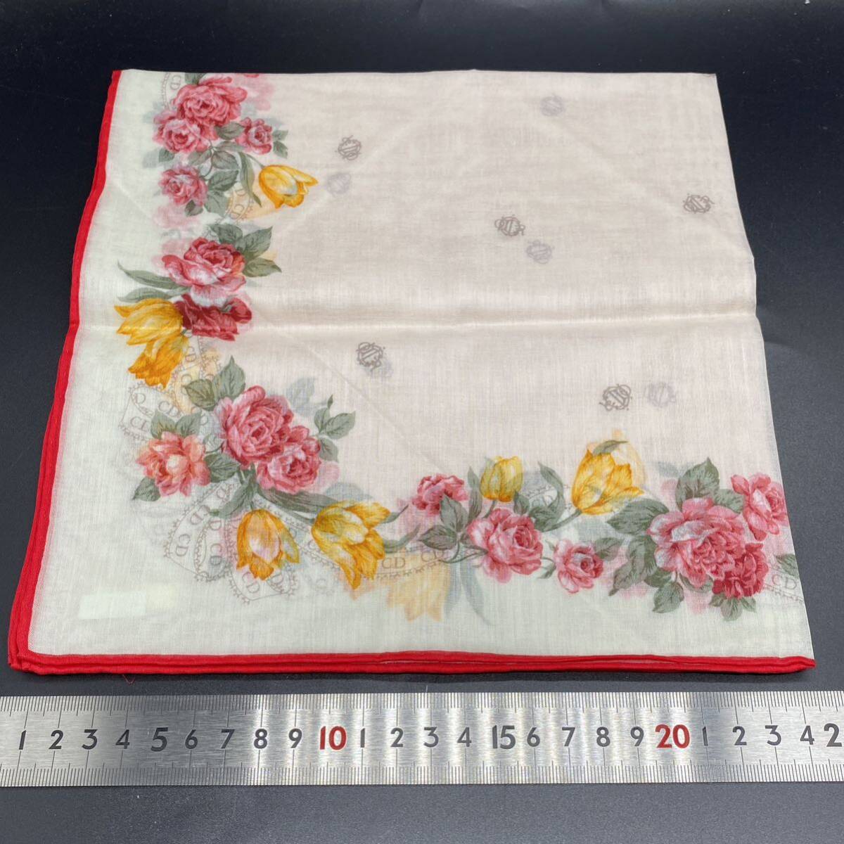 Christian Dior クリスチャンディオール ハンカチ 花柄 薔薇 チューリップ ふちレッド no.39