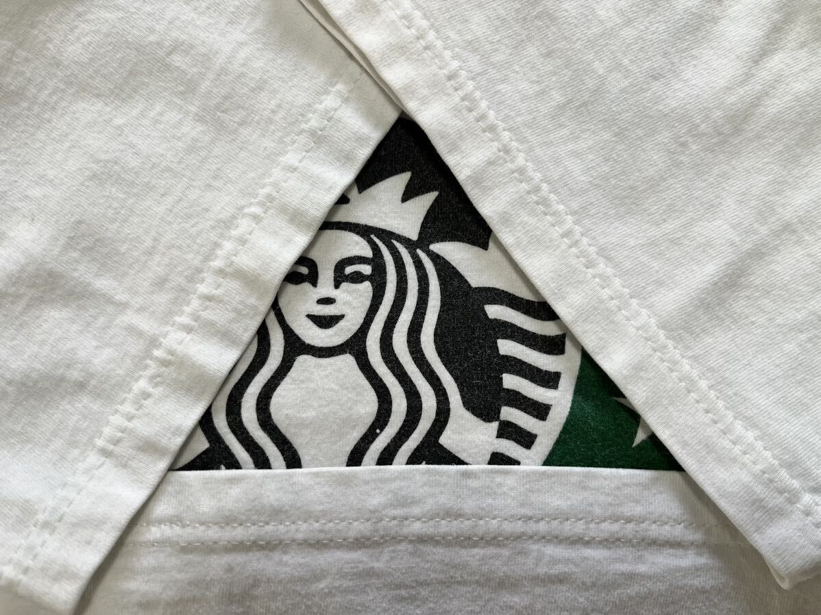90's VINTAGE アメリカ製 スタバTシャツになります。フロント薄い染み、バック小穴あります。