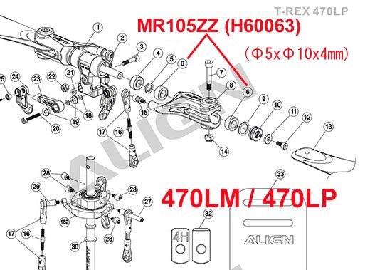 ☆T-REXパーツ ☆ 【H60063】 ベアリング (MR105ZZ)☆Bearing MR105ZZ x 2(Φ5xΦ10x4mm)☆T-REX 470-550-600 (O-1)☆