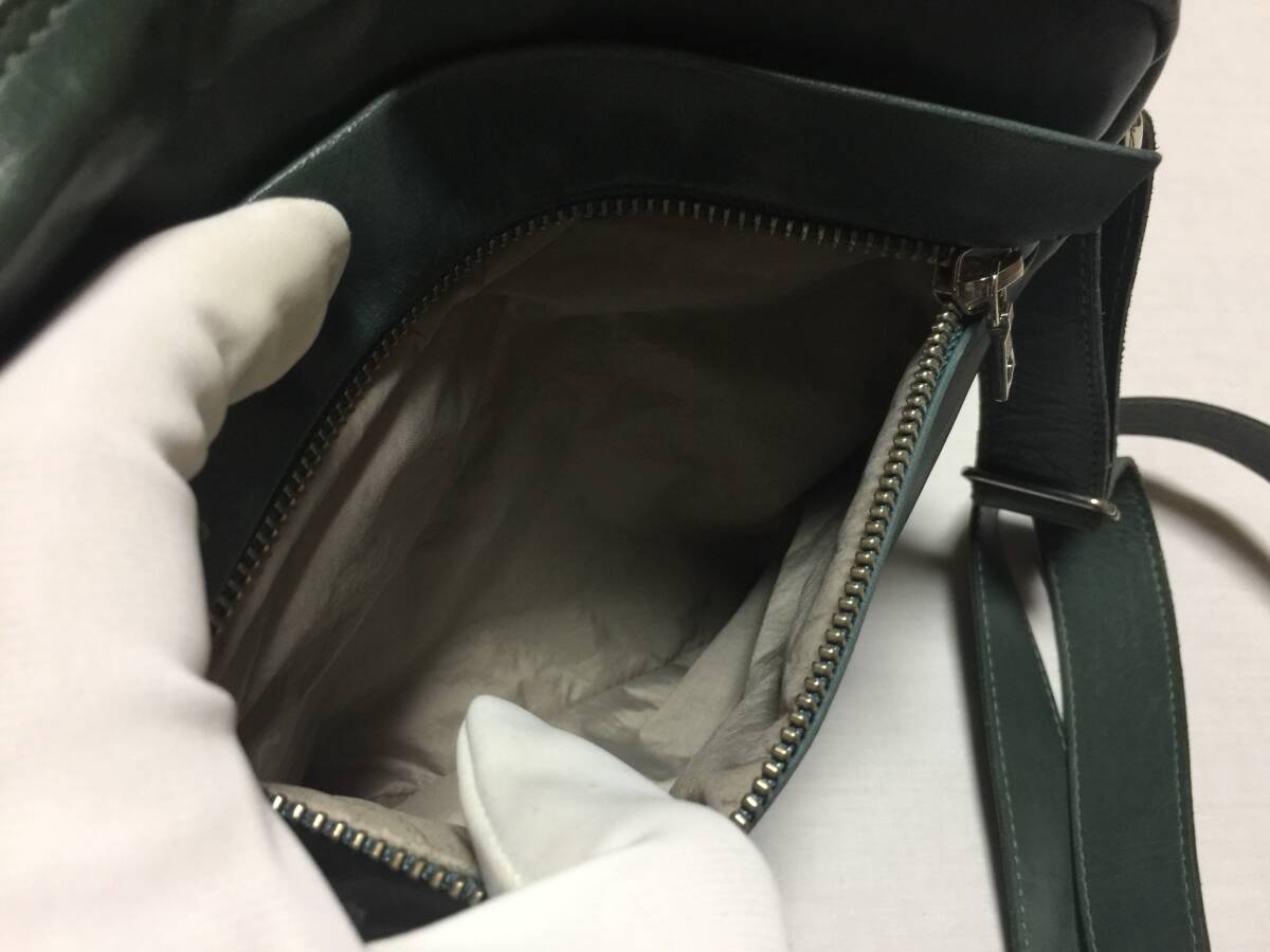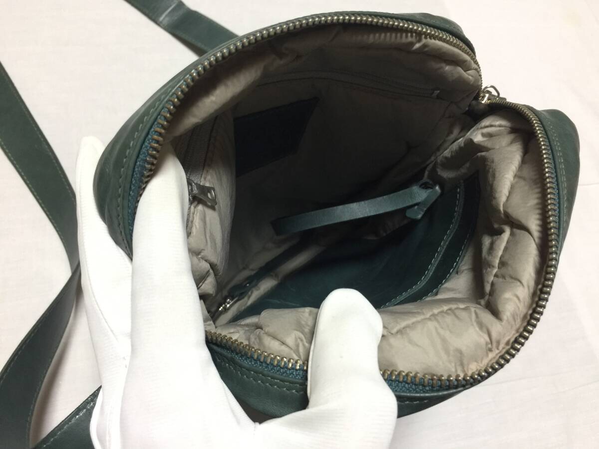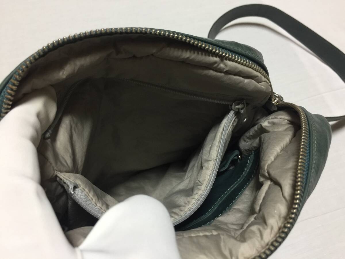 限定色のエメラルド系のお色になります。購入時のアニリンレザーの風合いと香りも残っております。