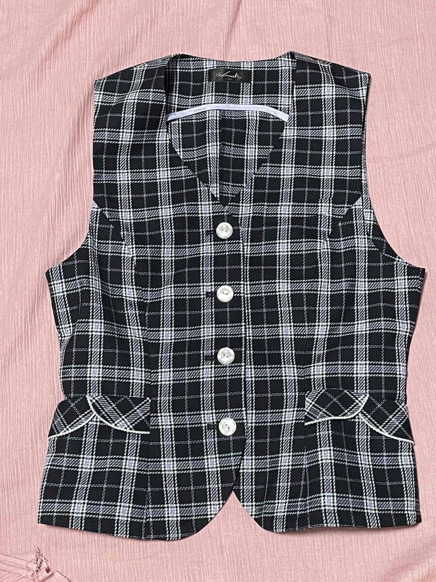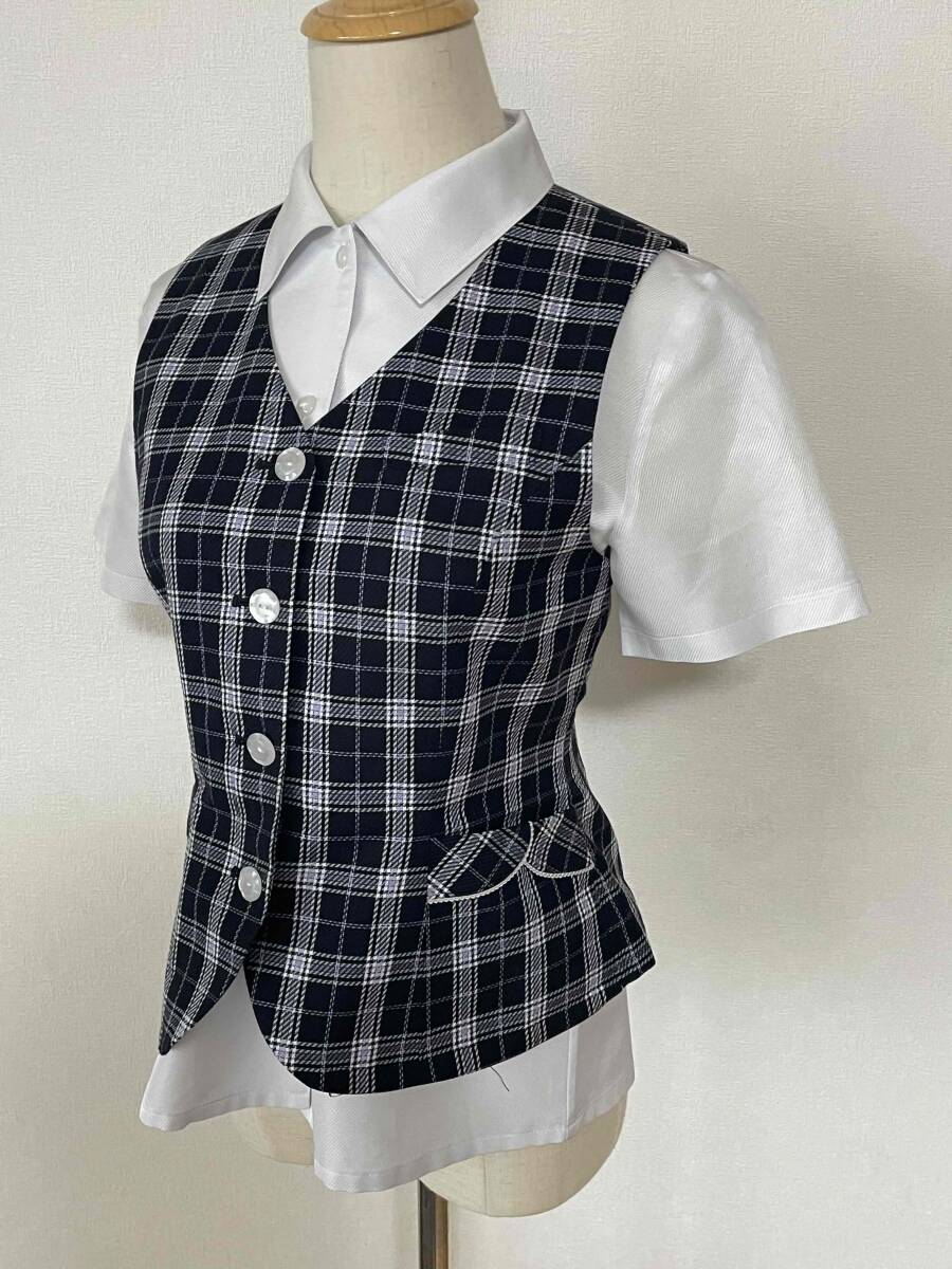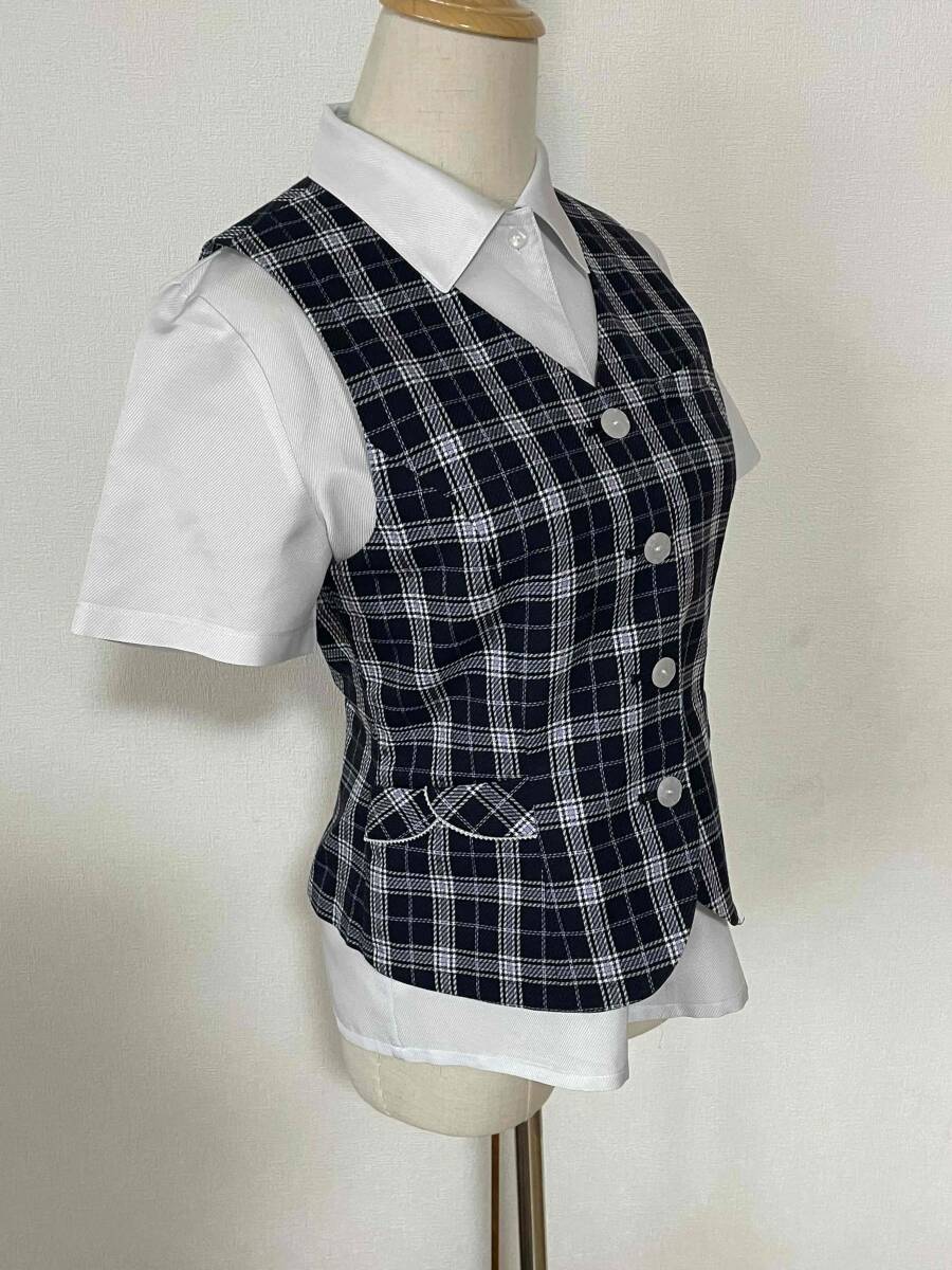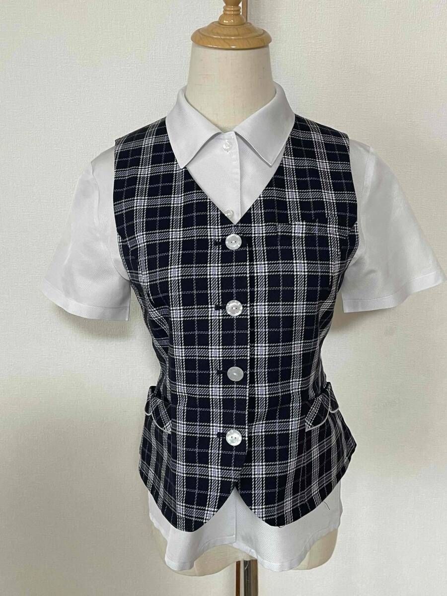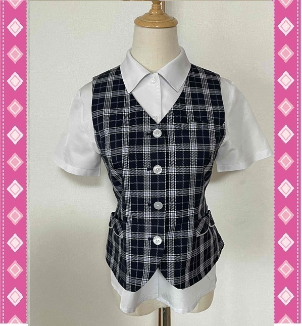 ※Aランク【中古】Hinack_7号ベスト_HCV6160/チェック/ハイナック/かわいい会社事務服/おしゃれOL制服/手洗い洗濯可能