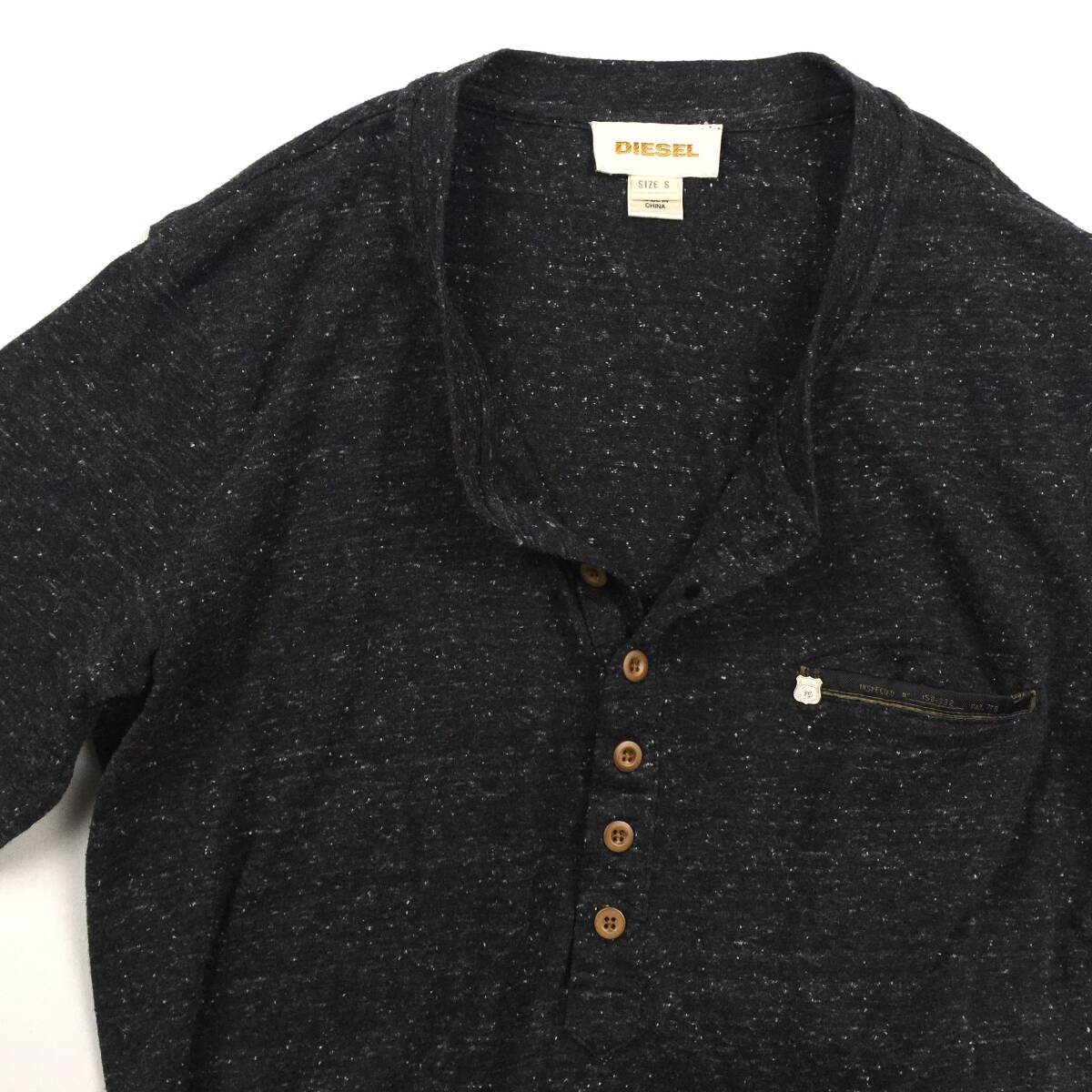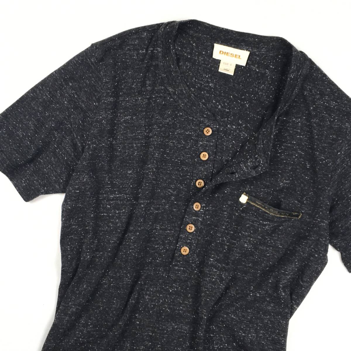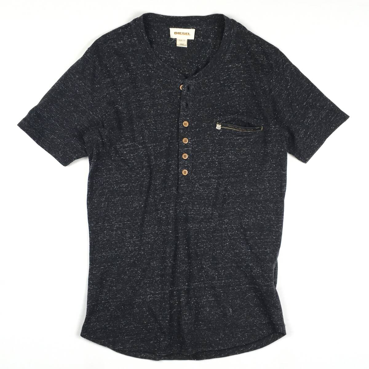 極美品【DIESEL/ディーゼル】大人見え/霜降りブラック!細身シルエット・ヘンリーネック 半袖Tシャツ S レーヨン混 メンズ