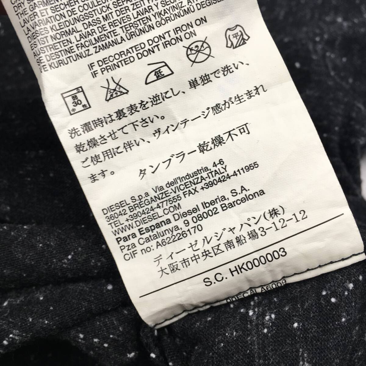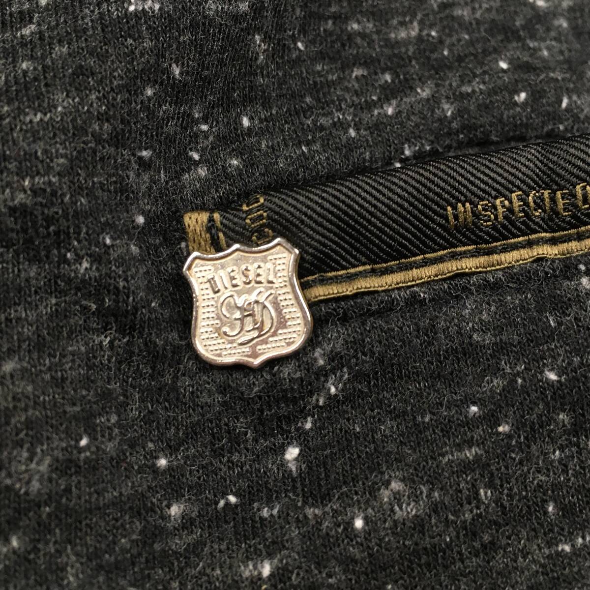 胸元の「DIESEL」の金具ロゴとラインテープで高級感も演出。