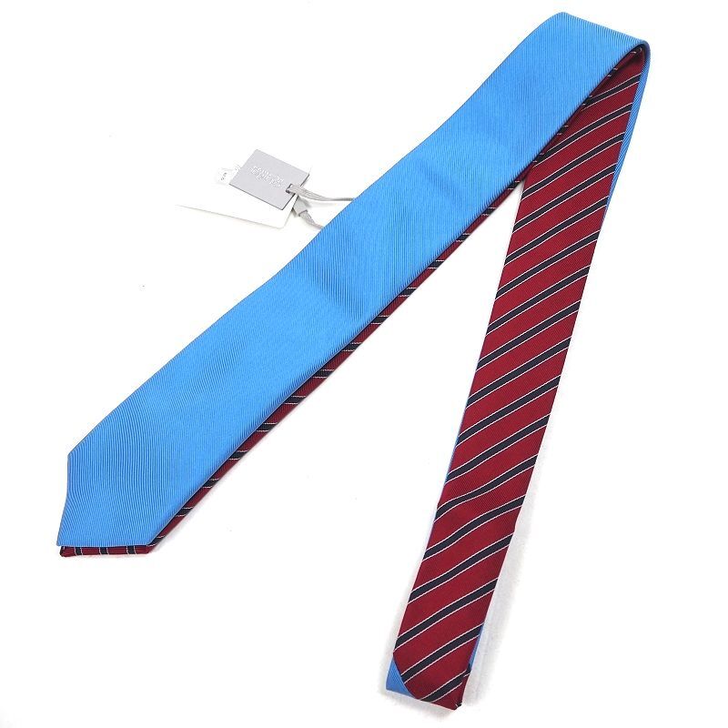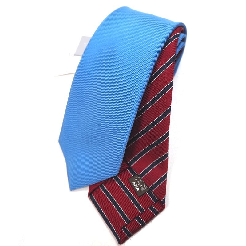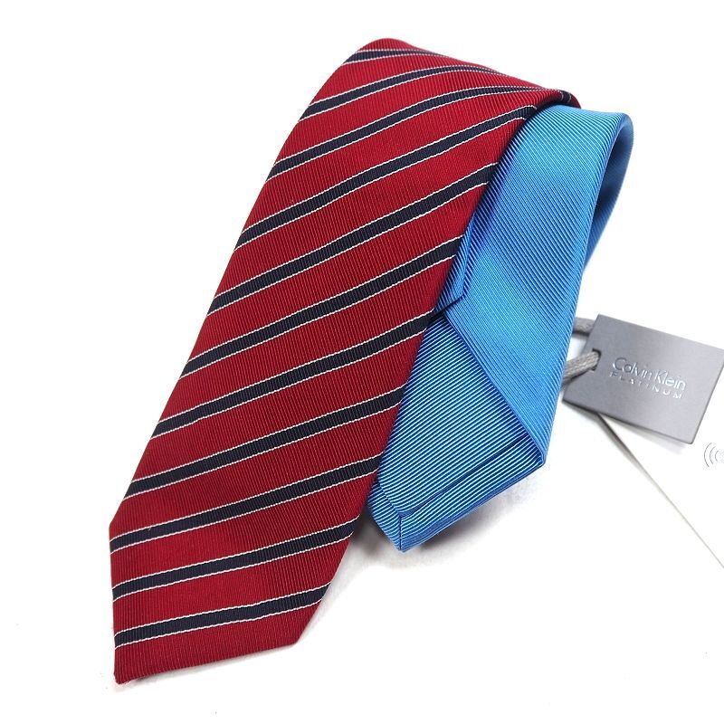 新品 定価1.6万 カルバンクライン 日本製 ストライプ リバーシブル ネクタイ CALVIN KLEIN ビジネス オンワード樫山 ブルー×ワイン |