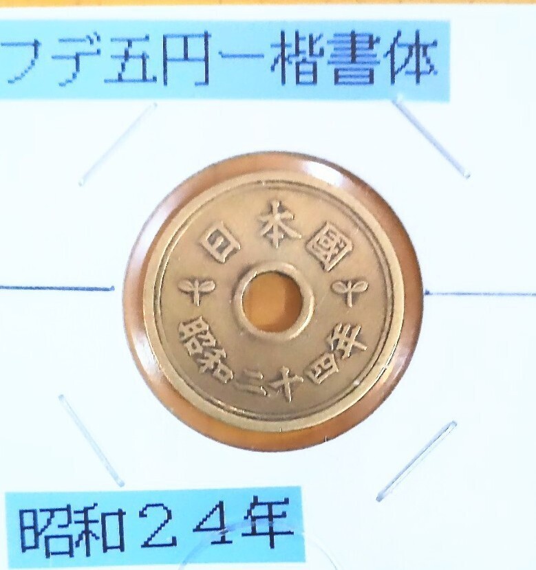 ◆フデ五円楷書体黄銅貨幣1枚出品